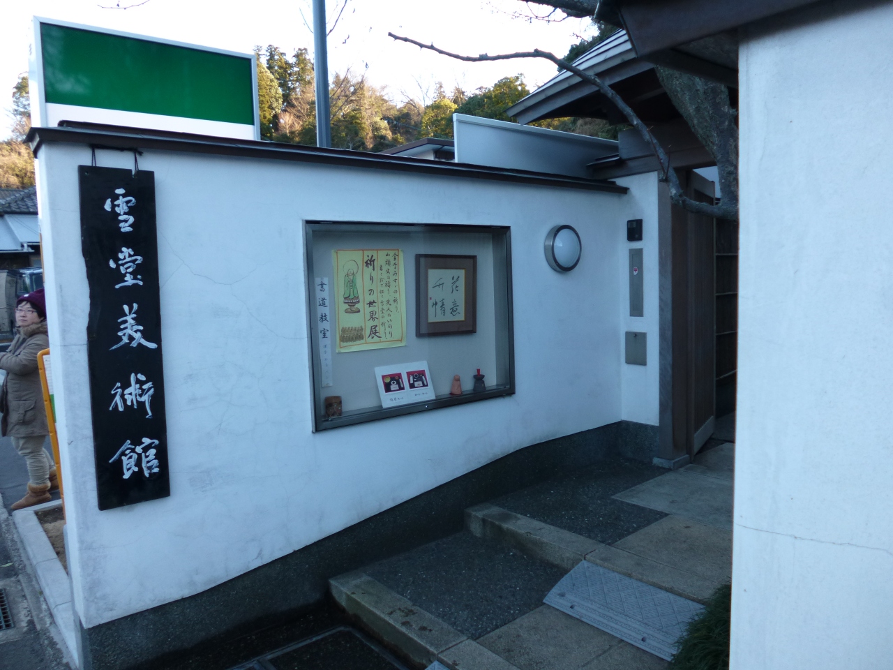 北鎌倉駅から鶴岡八幡宮方面に向かう県道沿いにある小さな美術館です。フォートラベルの地図は正しい位置を記していないので、注意が必要です。