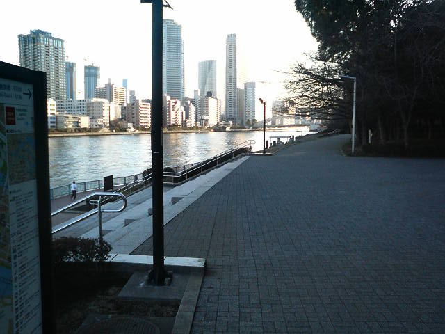 (聖路加ガーデンの中を抜けて川沿いに出れます)