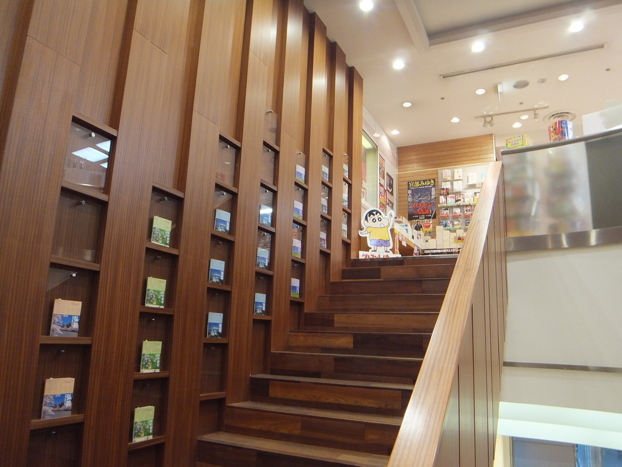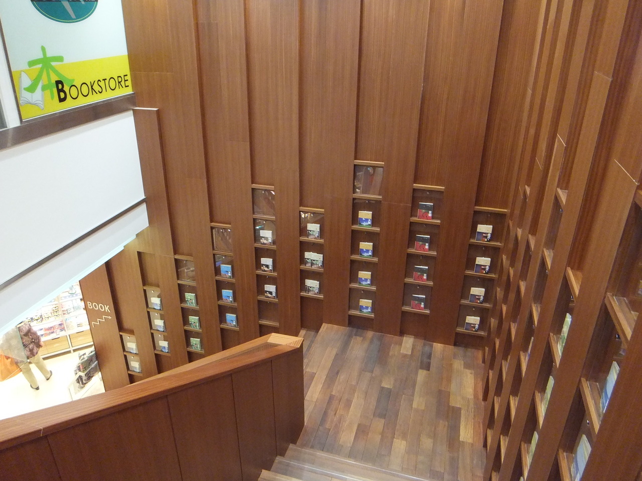 階段には各方面のガイドブックが飾ってあります。いや、飾るために階段の壁を造作したのでしょう。出発ロビー(日本航空・スカイマーク)にあるので、旅のガイドがほしい時は役に立ちます。