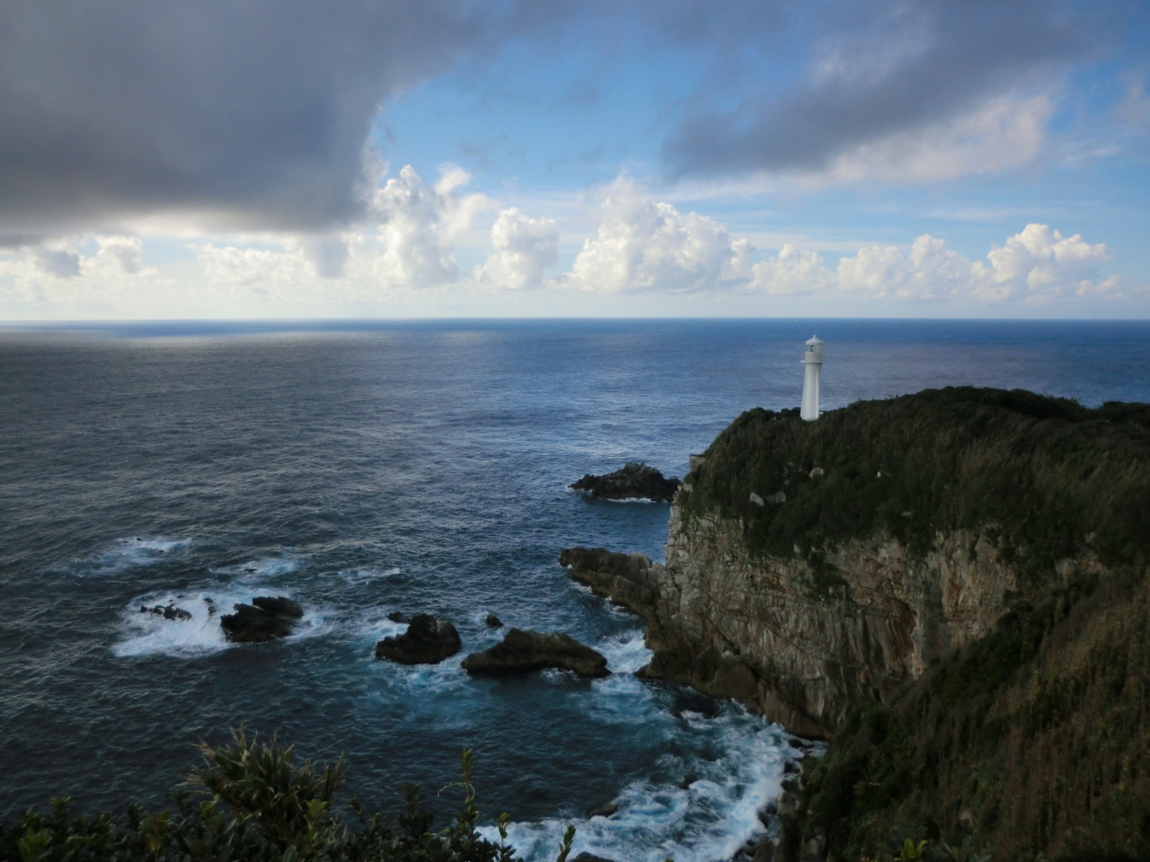 切り立った崖に白い灯台が映える景色!
