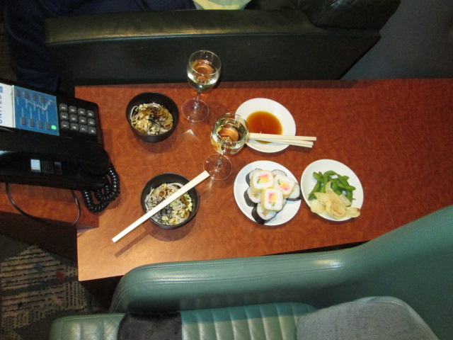 31番ゲート近くです。とても広くて、時間が夜だったためかガラガラでした。JAPANを意識した内装です。上階のファーストを少しのぞいたら誰もいない、、、。食べ物は巻きずしが印象に残ります。ユナイテッドを利用する場合は近くて便利です。