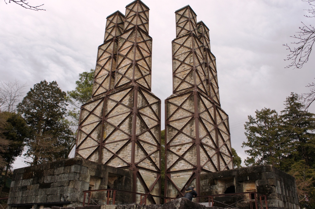 意識せずに訪れた観光地がその後、世界遺産となり、ものすごく注目されて近づくのも大変というケースを三保松原で経験しました。韮山の反射炉はどうでしょう。既に日本レベルでは「明治日本の産業革命遺産九州・山口と関連地域」の一つになっていますけどね。さて、韮山反射炉はイチゴのハウスが並ぶ韮山の農業地帯からは東側に少し外れたところにあります。観光地としての開発を進めたようで、周囲にはお土産物屋、レストランなどがありました。駐車場も今のところは広め(世界遺産になったら、とても足りないと思うけど)。それはともかく、100円の入場料を払って見た反射炉には思わず「本物?」とびっくりしてしまいました。まさか、1857年につくられたものが、修復されたとはいえ残っているとは。反射炉と言えば佐賀では小学校の隅にあるミニチュア、萩では炉だけ残った物を見ましたが、こちらはそのままの姿を見せていて、思わず感動しちゃいました。説明も丁寧で中の炉の状態もよく分かります。世界遺産の候補ですもの、意気込みが違うのかな。ペリーの黒船襲来で幕府が慌てて大砲鋳造用の反射炉つくりに着手したのは1853年。当初は下田の予定だったけど、アメリカ兵がうろうろすることから韮山が建設地となったそうです。1864年まで使用され、鋳造された大砲28基がお台場などに配備されたとか。反射炉の周囲ぐるりが公園になっており、内部も間近で見られるようになっていますが、世界遺産登録で富岡製紙工場みたいになったら、ちょっと大変かも。