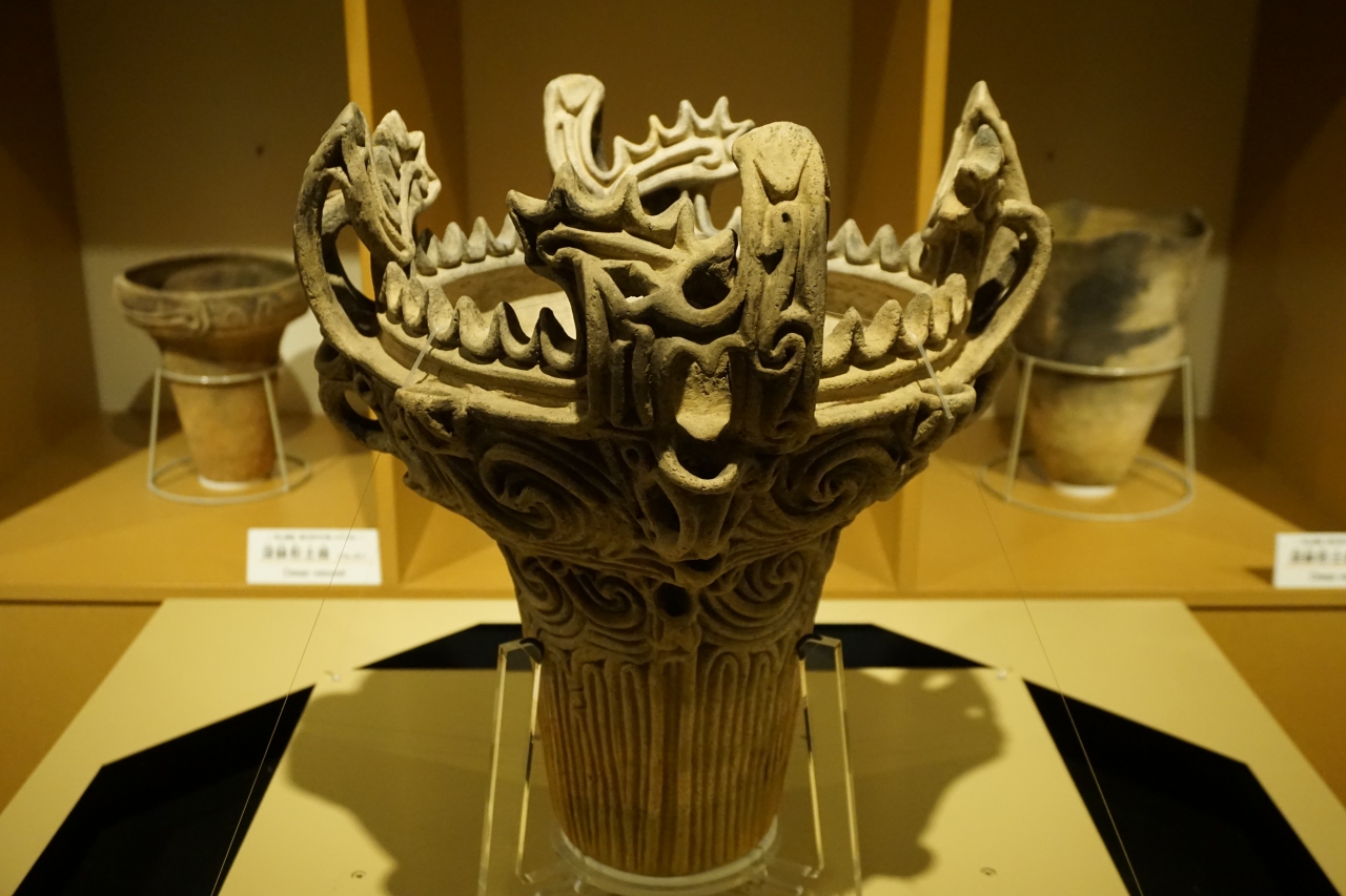 十日町市博物館は、国宝火焔土器を展示する博物館。国宝の火焔土器は、一つなんですが、小さい火焔土器もあって、一つの型として存在していたようですね。水の形を表している部分があったりするようですが、どっちにしても定説はない。私は動物の形を組み合せたようにも見えましたが、いかがでしょうか。