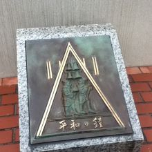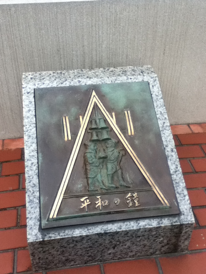 JR東京駅の東、八重洲通りにある。鐘は鋼製の柱を三角形に組んだ頭部に設置されていて全体はかなり高いものである。このため、八重洲通りは広いが、両側の歩道からでも、中央分離帯にあるこちらの鐘が見える。横断歩道の途中から鐘の近くまで行くことはできるが、そこに行く人はいなかった。鐘は、中央区が昭和63年世界の恒久平和と人類の永遠の繁栄を祈念し平和都市宣言を行ったことを記念して設置したものである。この界隈での散策等の途中、訪問することをお勧めする。
