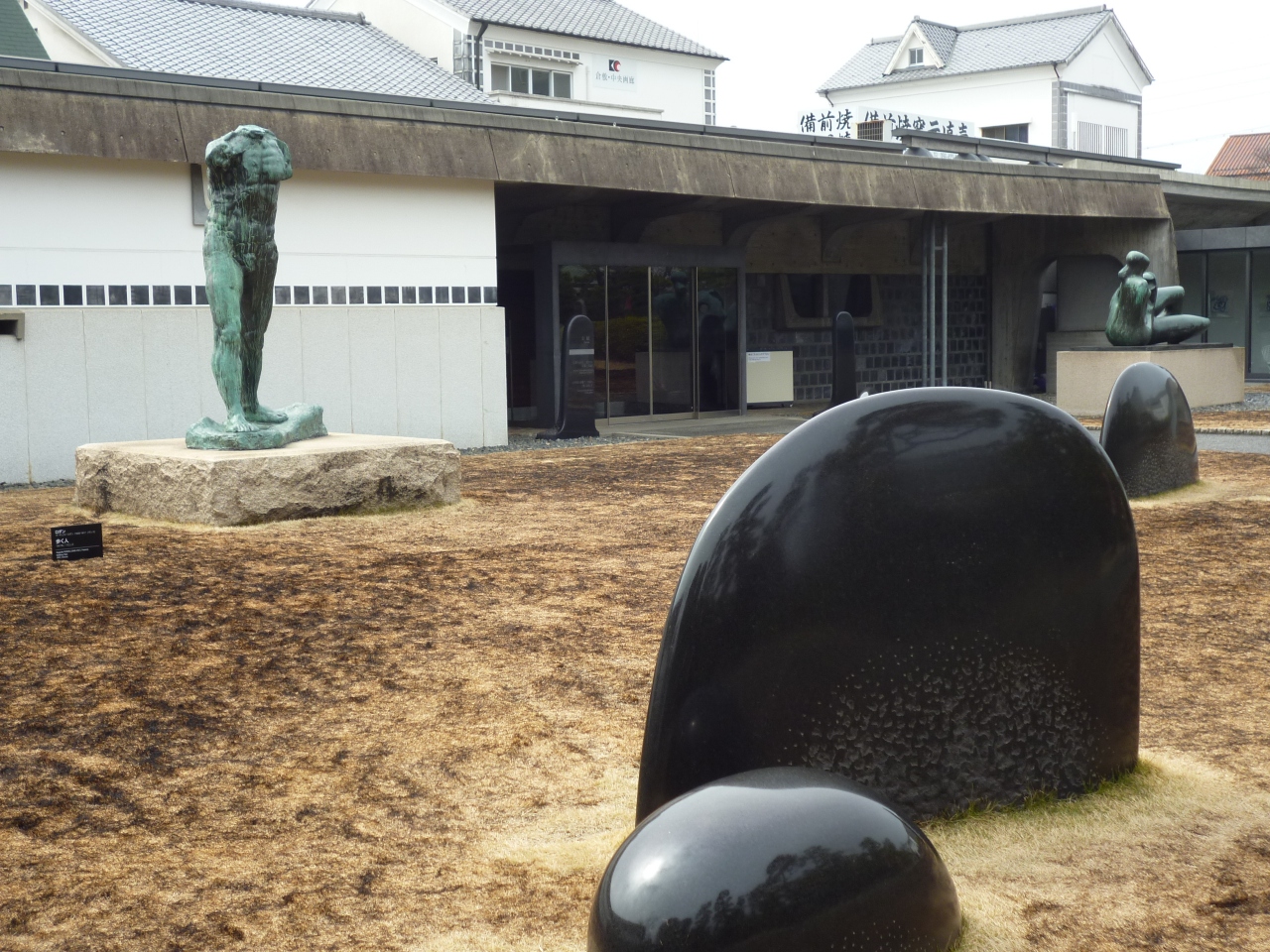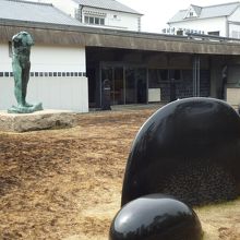 大原美術館の裏に回ると、モダンな分館があります。よく手入れされた前庭には、ロダンとムーアの彫刻があります。岸田劉生の「童女舞姿」がありました。日本の洋画家の作品が展示されています。地下には、現代美術が展示されていました。