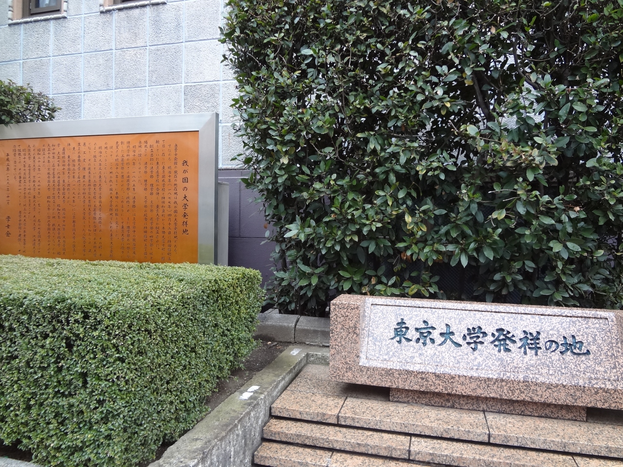 神保町駅から徒歩数分、学士会館の入り口のすぐ脇に「我が国の大学発祥地」「東京大学発祥の地」という二つの史跡が並んでいます。