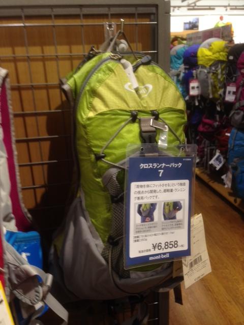 モンベルというと「登山用品専門店」といったイメージがありますが、この日は通りがかりにランニング関連商品を物色してみました。バックパックを探していたところ、店の前を通ったときに、それらしきものを発見したのです。ランニング関係の品は、やはり少ないですが、品質も高く、価格も手ごろなものがありました。