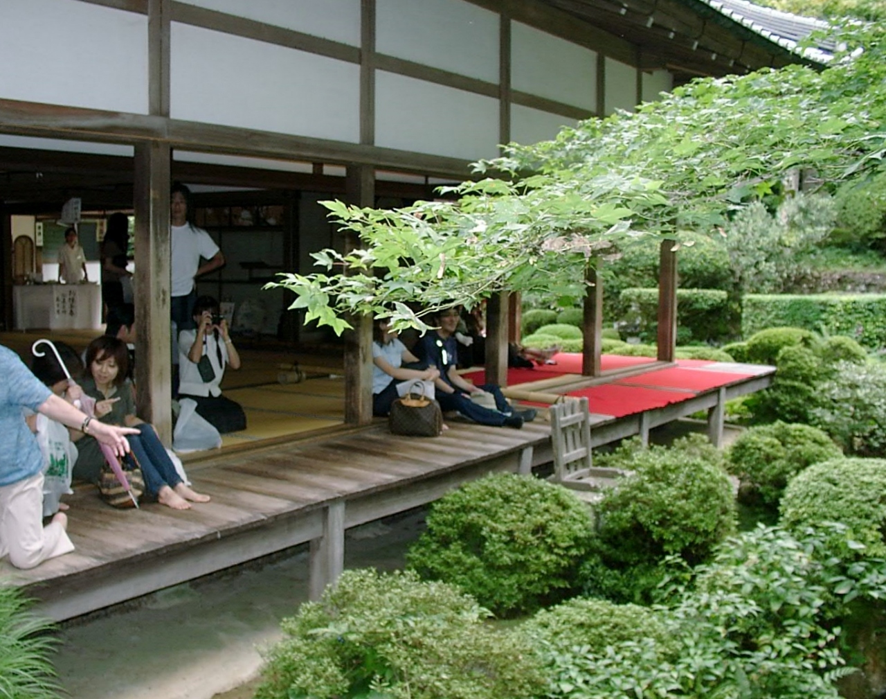 まるでお城のような石垣を登っての寺への入場になります。門をすぐ左に曲がって受付手続きをして中に入ります。客殿、極楽院と順路に従って見物するのですがどの位置からも緑に覆われた庭園が素晴らしかったです。