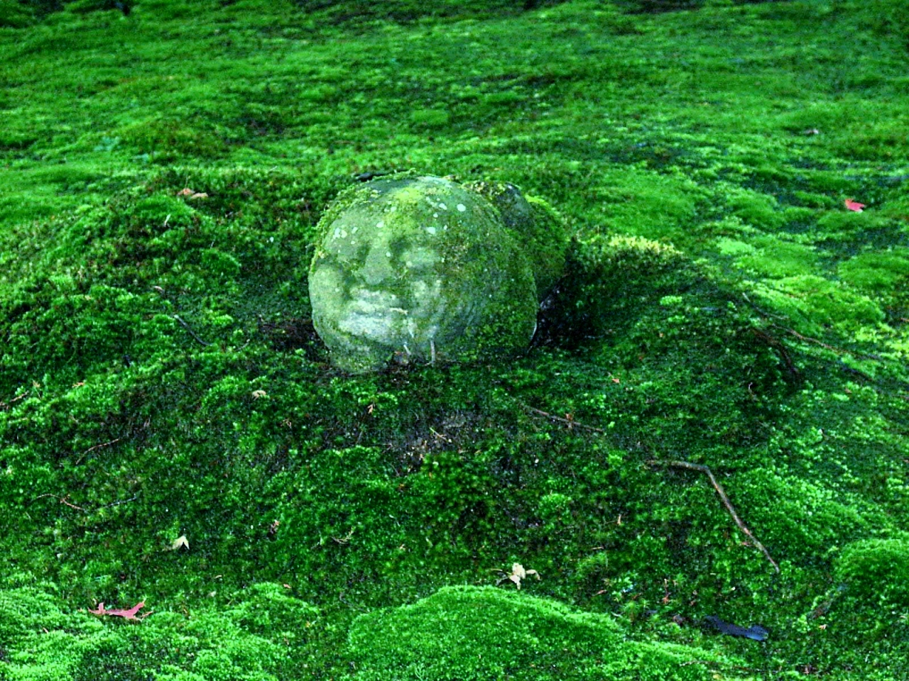 わらべ地蔵も苔蒸した色と地蔵が同化しており、よーく見ないと見つけにくかったです。可愛いと言えばかわいかったのですが見方によればちょっと不気味ではありますよね。