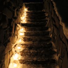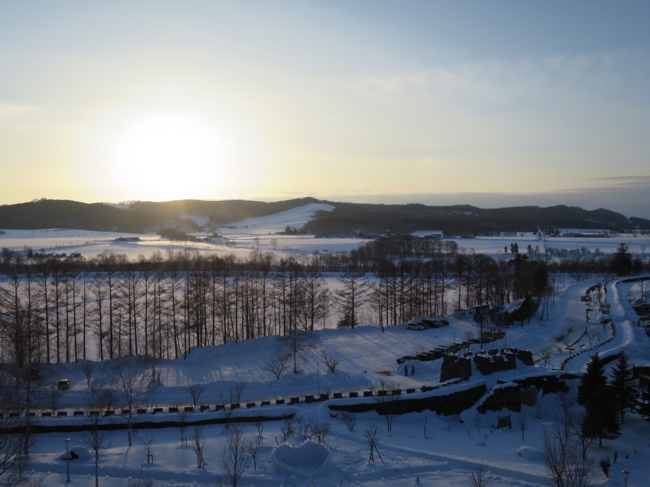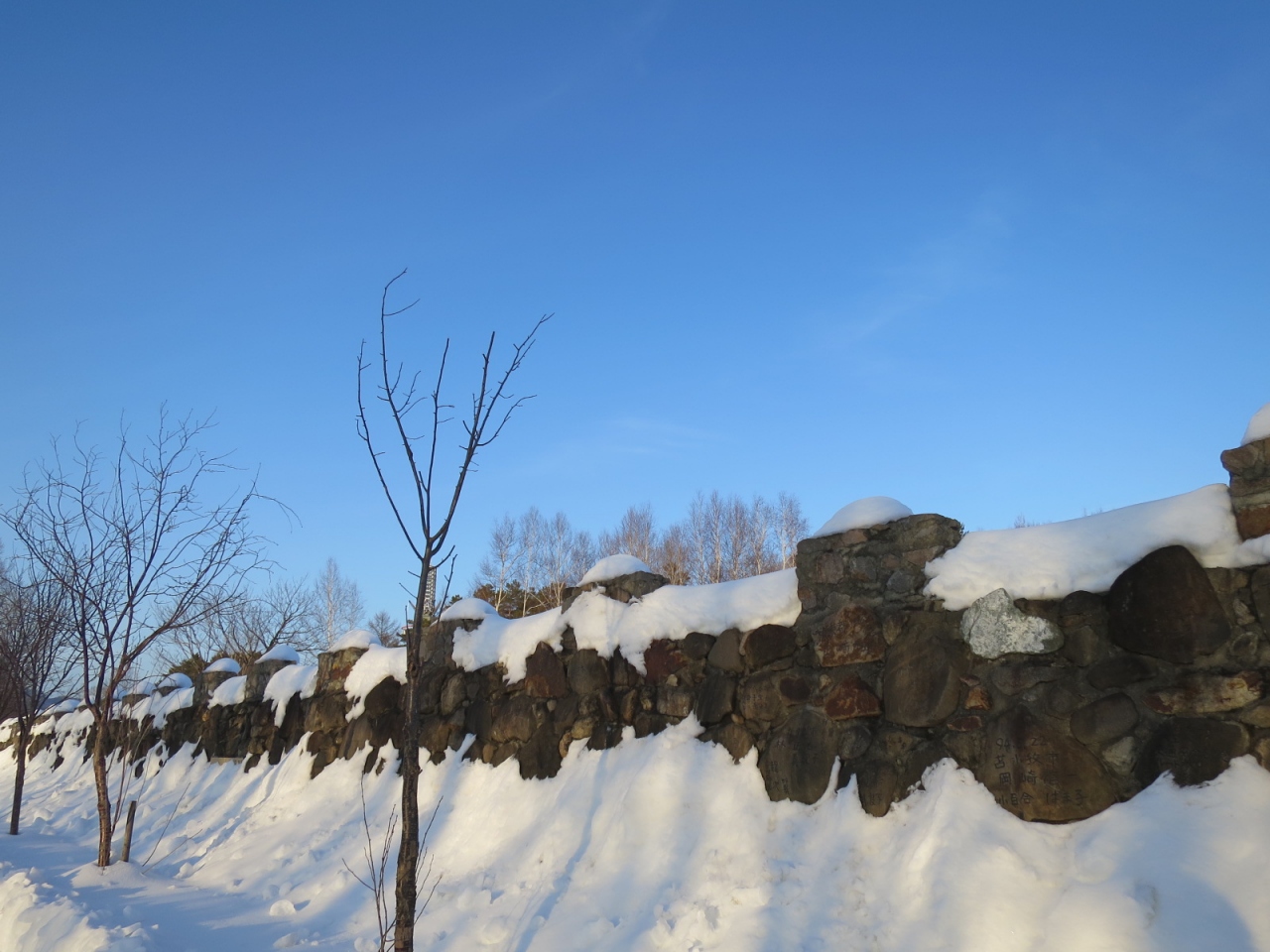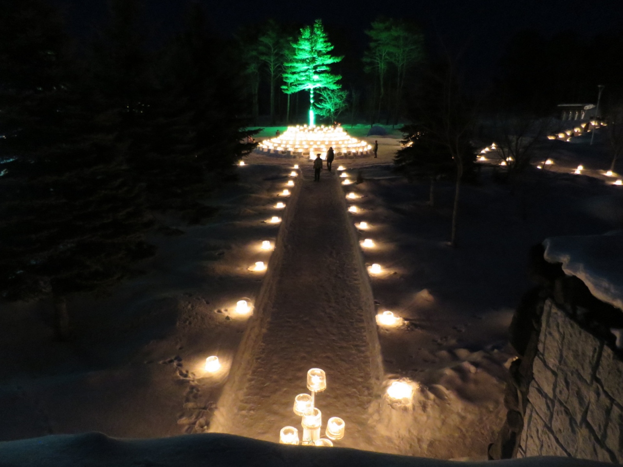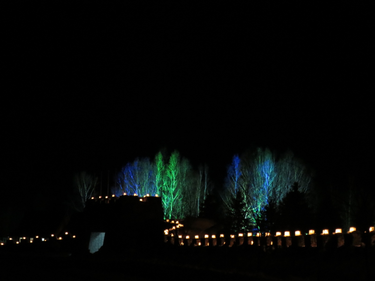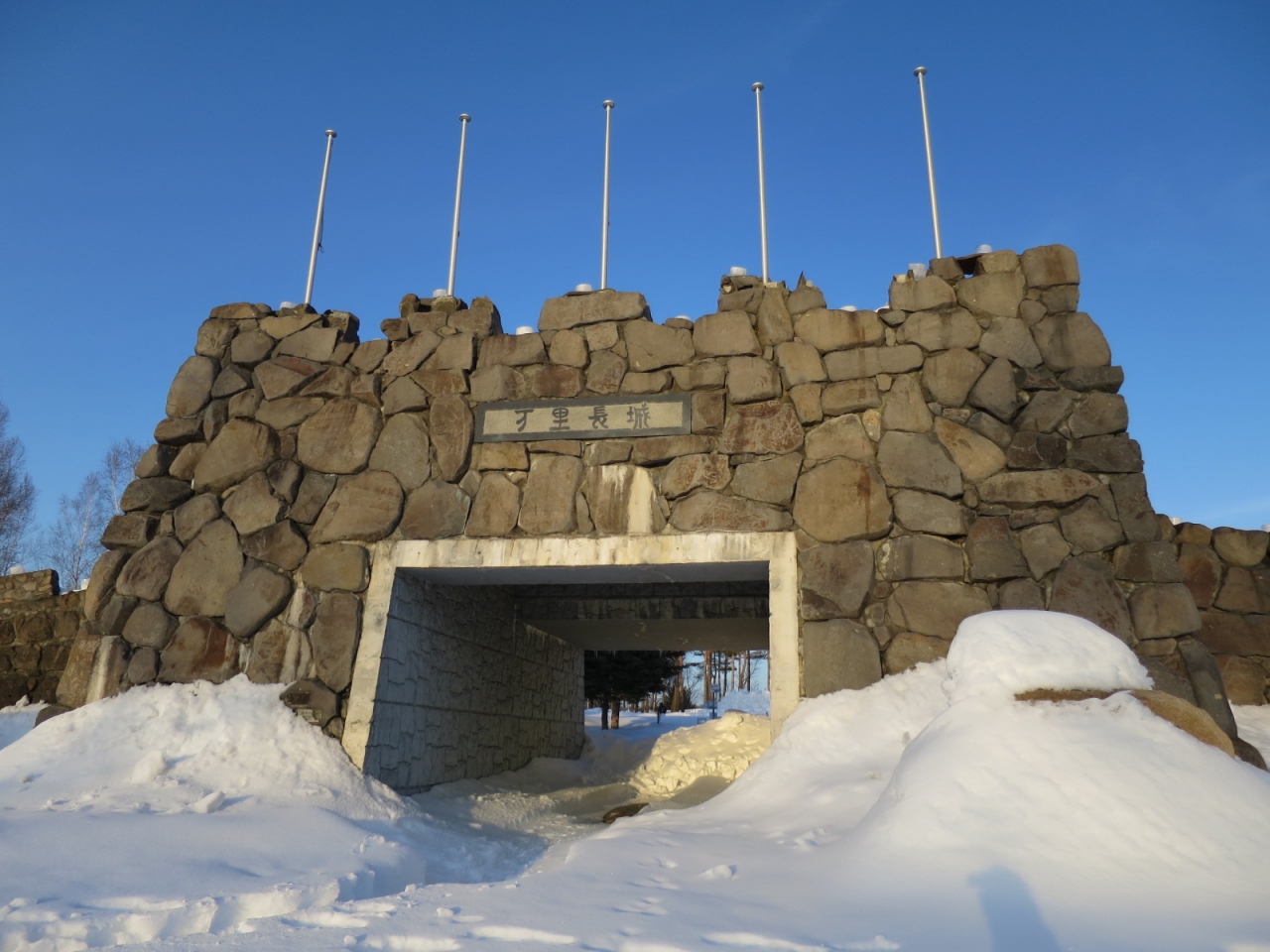 2月には下川アイスキャンドルミュージアムの会場となり、長城の一部にもキャンドルが灯ります。冬場は除雪されていないようで、長城の上を行くことができず、残念ですが、長城のメモリアルゲートの上からは、キャンドルが幻想的に灯る美しい眺めが見られました。