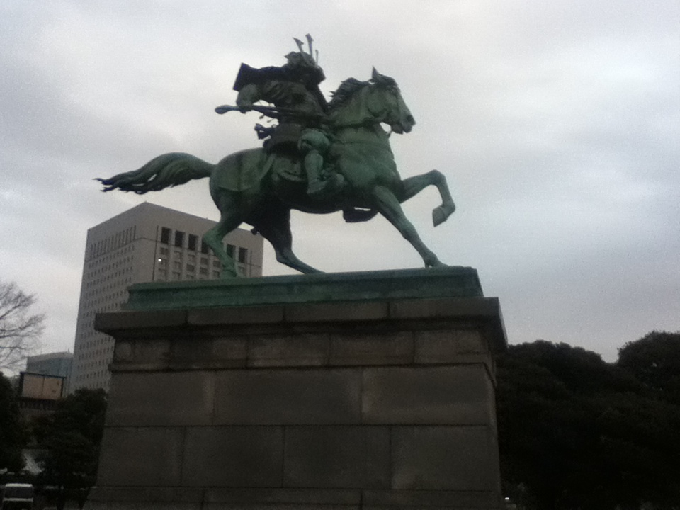 地下鉄日比谷駅の西、皇居外苑にある。馬場先門交差点を西へ進み南側の広場に入っていくと、こちらの銅像がある。久しぶりに見たが、台座が高く全体的に大きな銅像である。馬に乗り冑を被った楠木正成の姿は勇ましい。平日午後のせいか、他に人はいなく静かであった。銅像のみなので観光要素は少ないが、楠木正成は鎌倉時代末期から南北朝時代にかけての武将で、建武の新政の立役者として活躍した。特に楠木正成やこの界隈に関心や知識がある方には、訪問することをお勧めする。