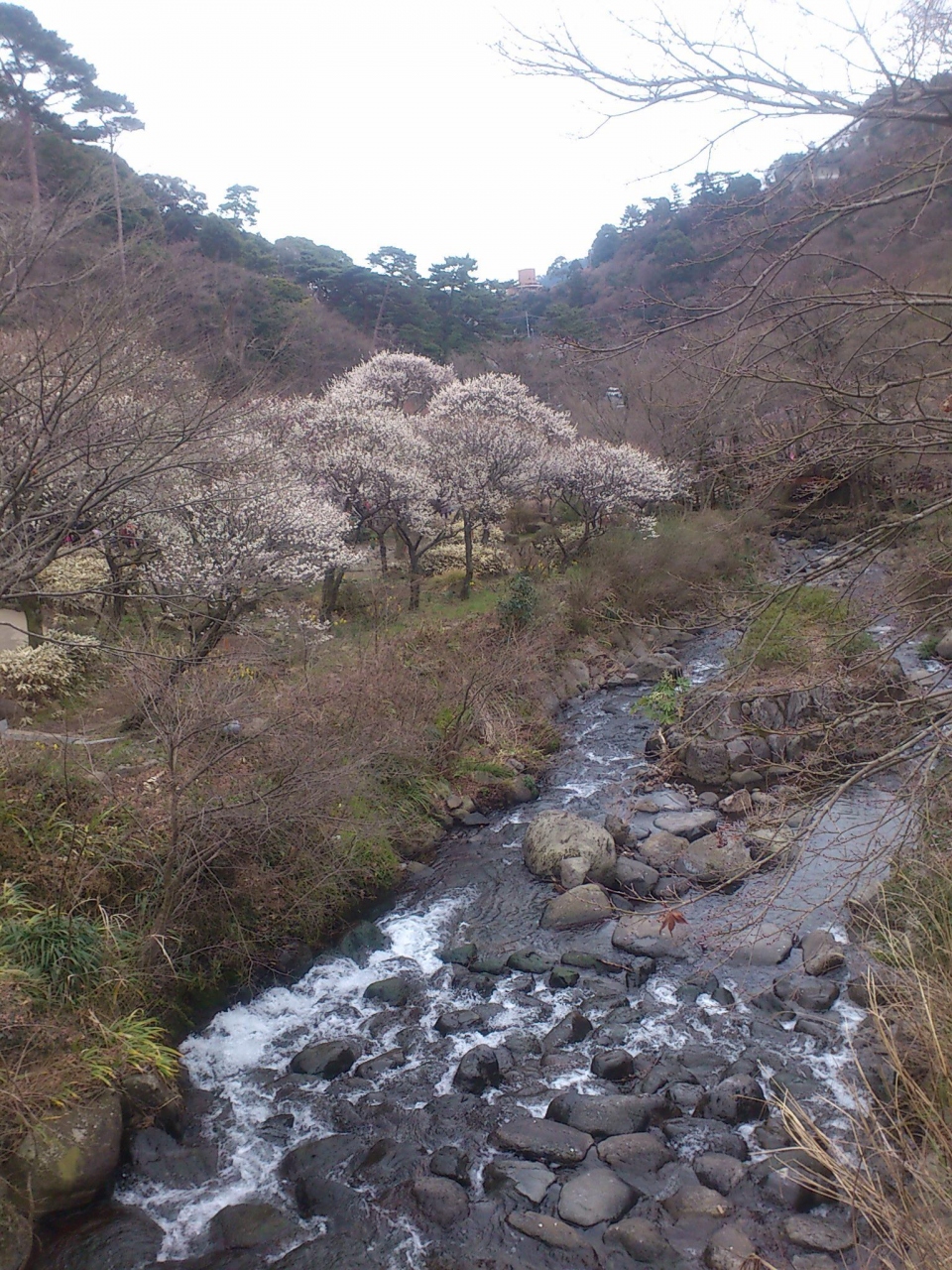 熱海梅園の中を流れる川です。梅まつりの期間中で、梅園内はすごい人出でした。夏にはホタル、秋には紅葉のみどころになりますが、梅の季節でも、この川が梅園内を流れていることで、梅園の景色が随分良いものになっていると思います。梅見の滝の水も、この川に流れ込みます。
