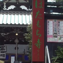三門の赤い柱におおきく「ぼたもち寺」と書かれているので