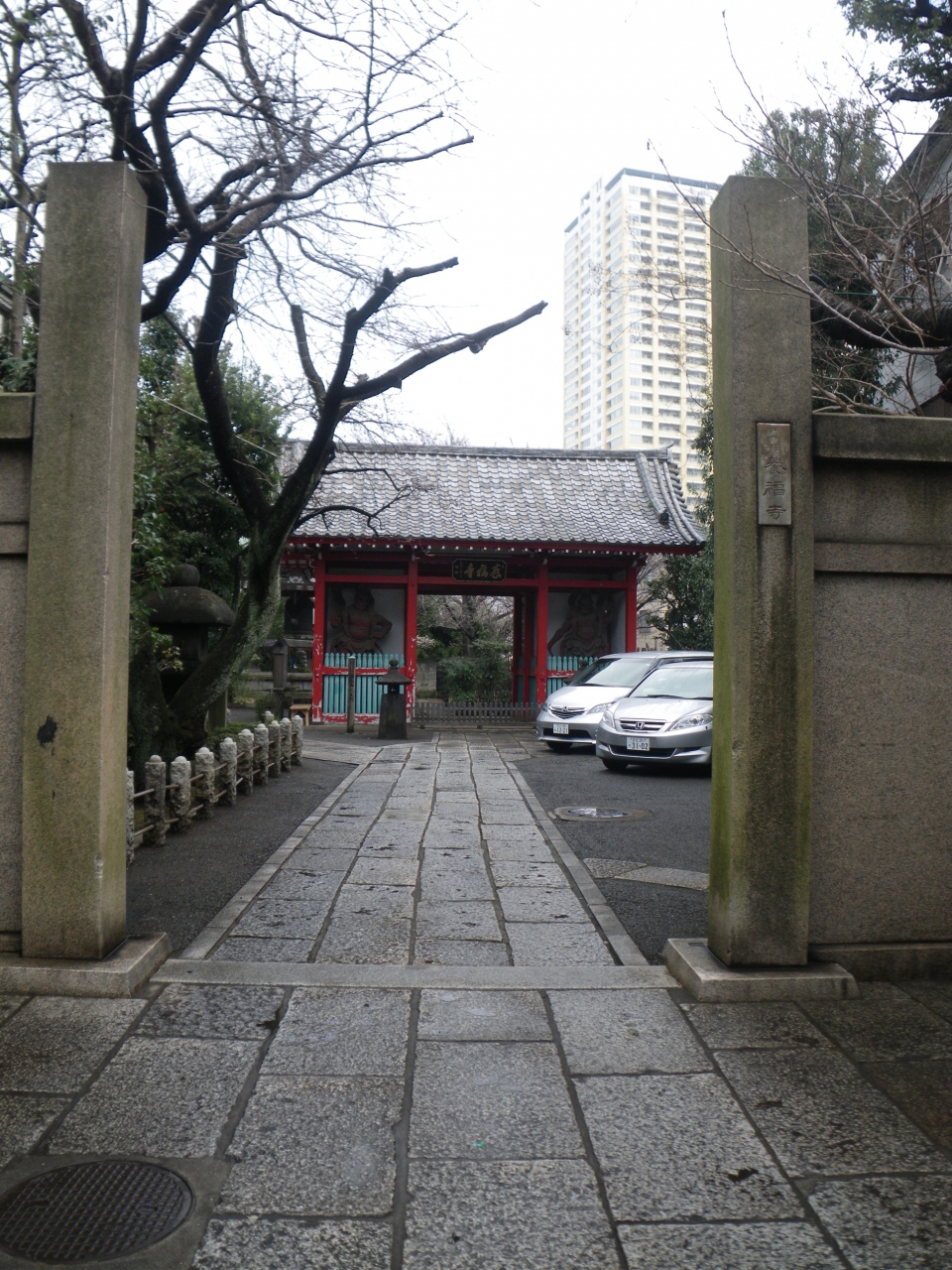 日暮里と西日暮里の間をむすぶ、高台にある諏訪台通りにあるお寺です。荒川区の登録文化財に指定されています。朱塗りの仁王門には広目天と多聞天の二天王像が安置されています。また談林派歴代の句碑、柏木如亭の碑、自堕落先生の碑など、さまざまな文人の碑が残っていました。