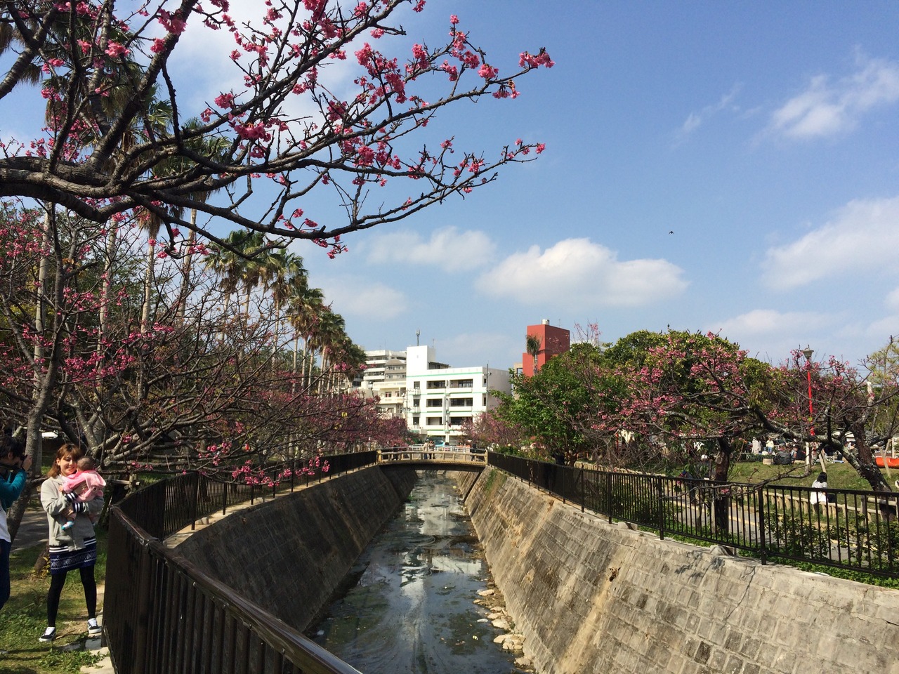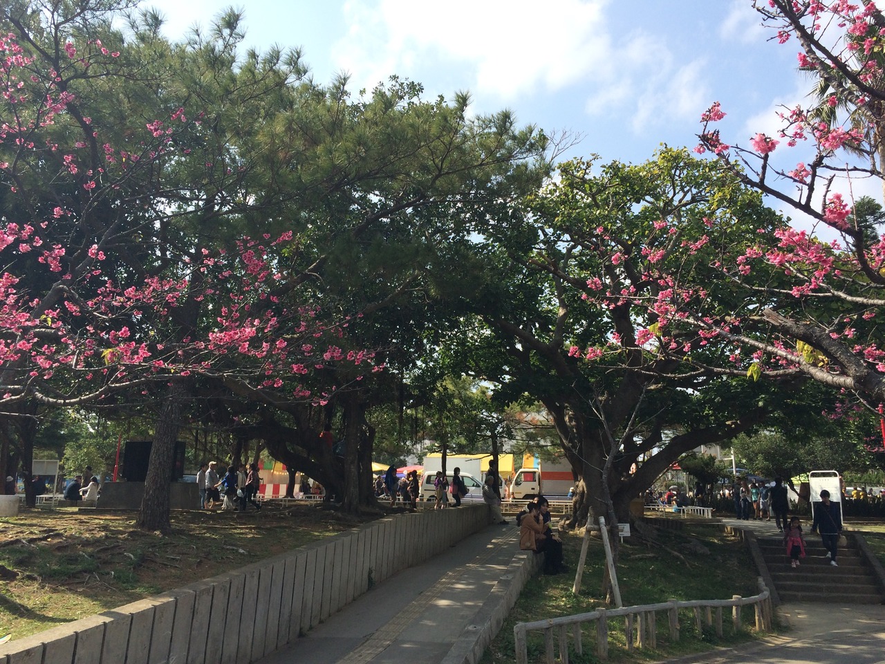 2月の沖縄旅行。桜が咲いているということで、那覇市内観光の際に立ち寄ってみました。