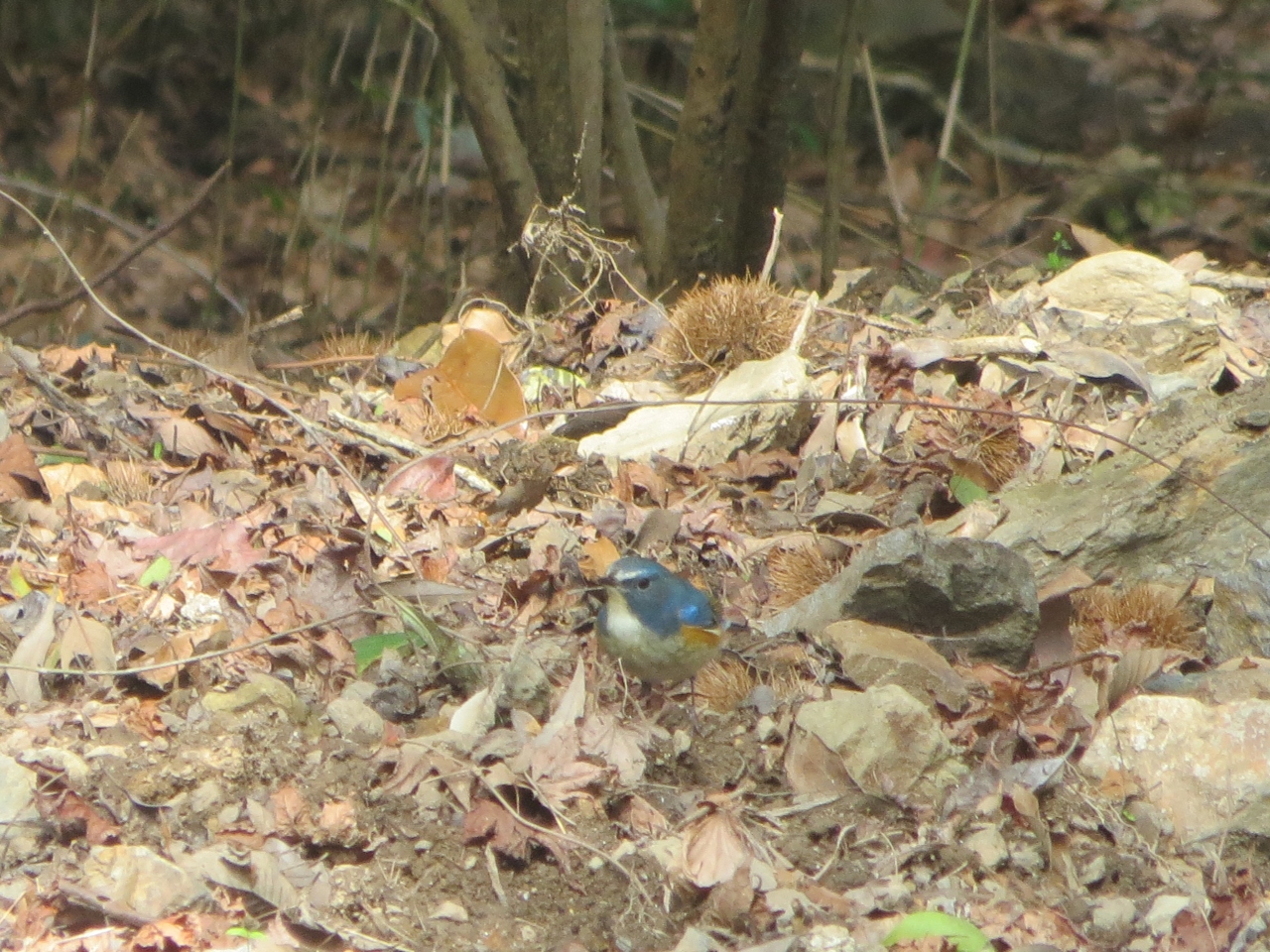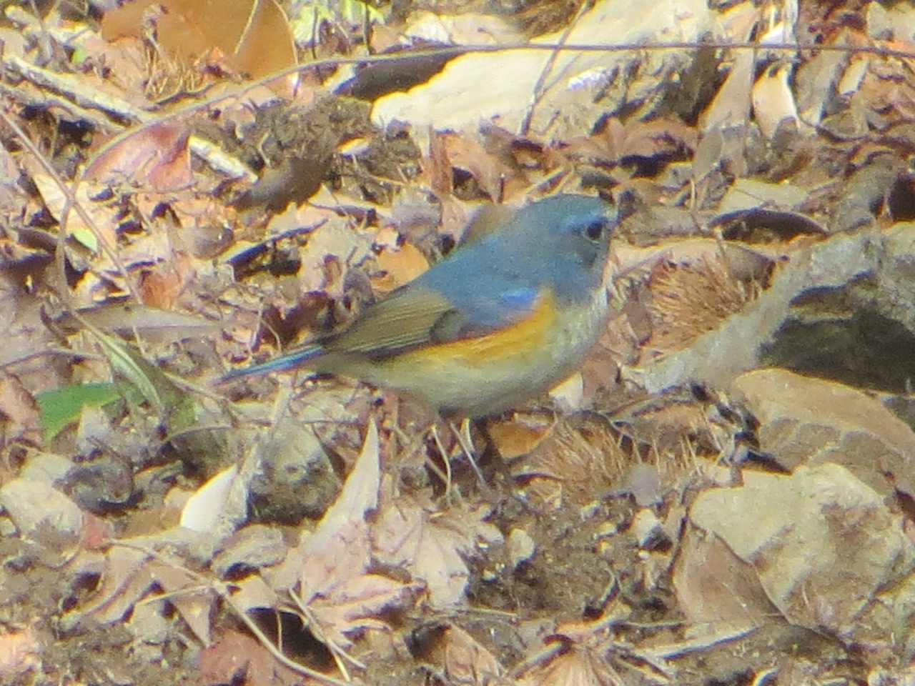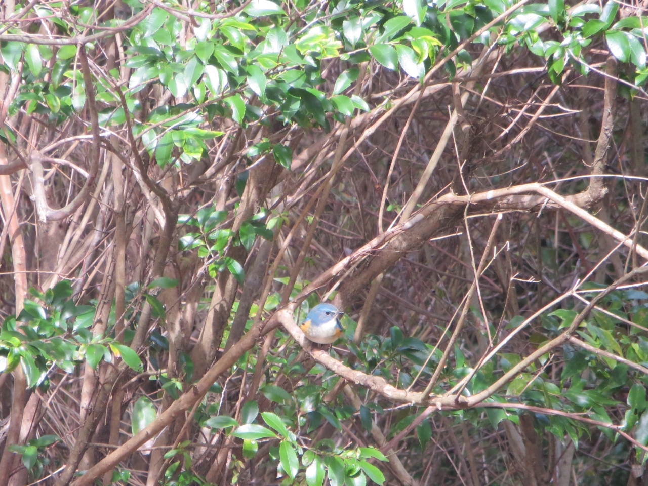 冬のこの時期になると野鳥が山から下りてきたり南から渡って来たりして、バードウオッチングのシーズンになります。特に冬でも暖かい日には普段見たことのない鳥を多く見ることができます。この日はとてもラッキー。青い鳥・ルリビタキに遭遇。亀山公園の天皇の火葬地の手前右側に茂みがあってここが小鳥の通る道になっているよう。ちょっと待っているといろいろな小鳥を見ることが出来ます。ちょうどよいところにベンチがあってそこから撮影しました。
