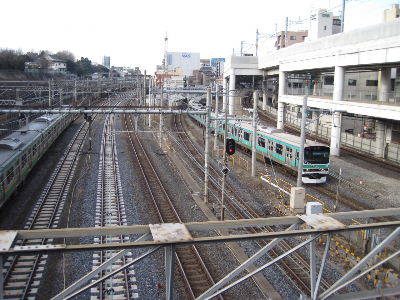 JR日暮里駅の北口を出てすぐのところにある特急や新幹線などたくさんの種類の電車を見下ろせるスポットです。子供から大人まで鉄道好きな人たちで賑わっていました。数分しか居ませんでしたが、その間だけでも新幹線と数本の特急が見られました。