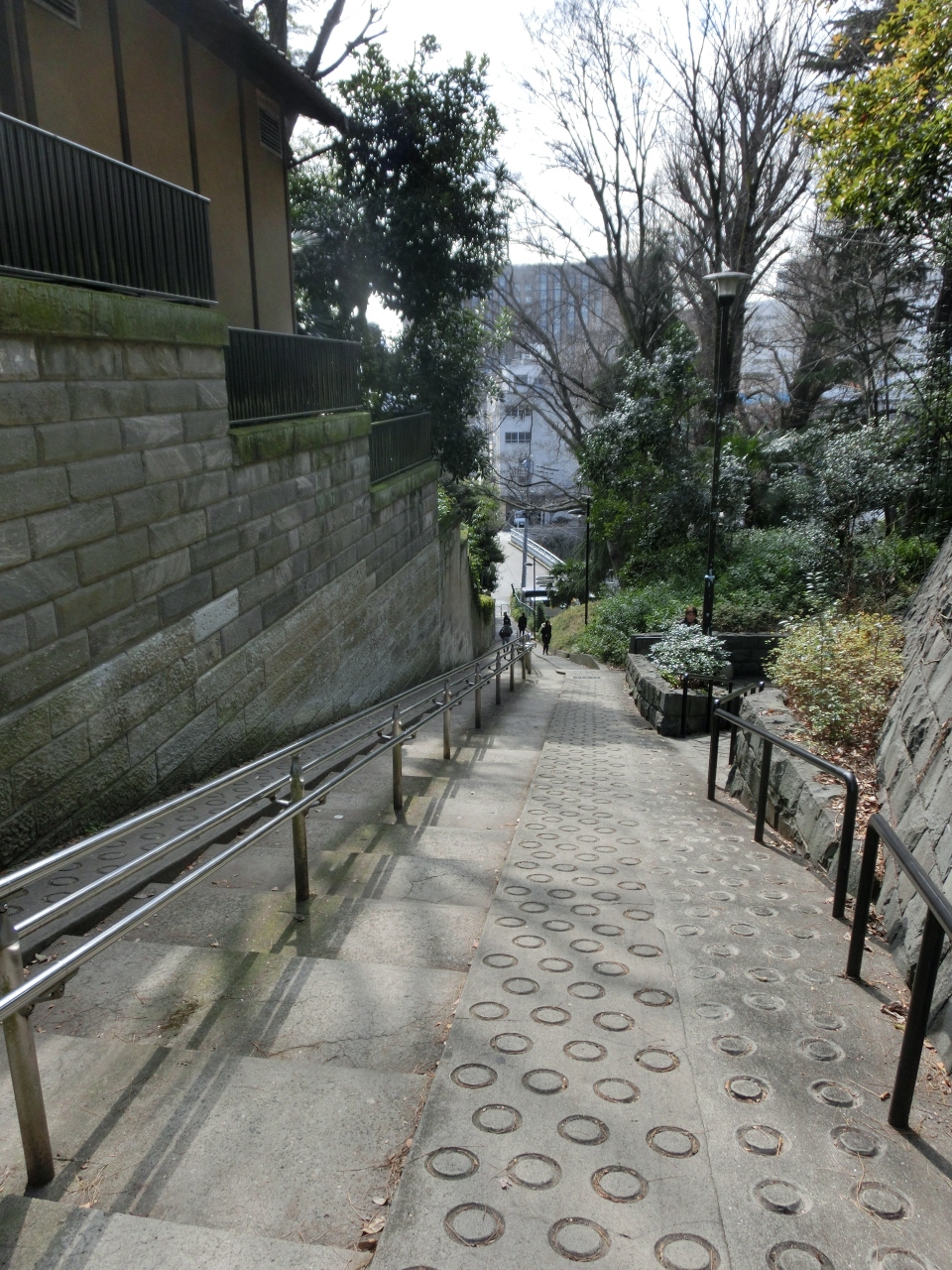 名前の通りに急です。真ん中に手すりが設けられているほどです。神田川側から上り始めると、左側にお休み所さえ在って、地元の方らしいお婆さんが休んでいました。