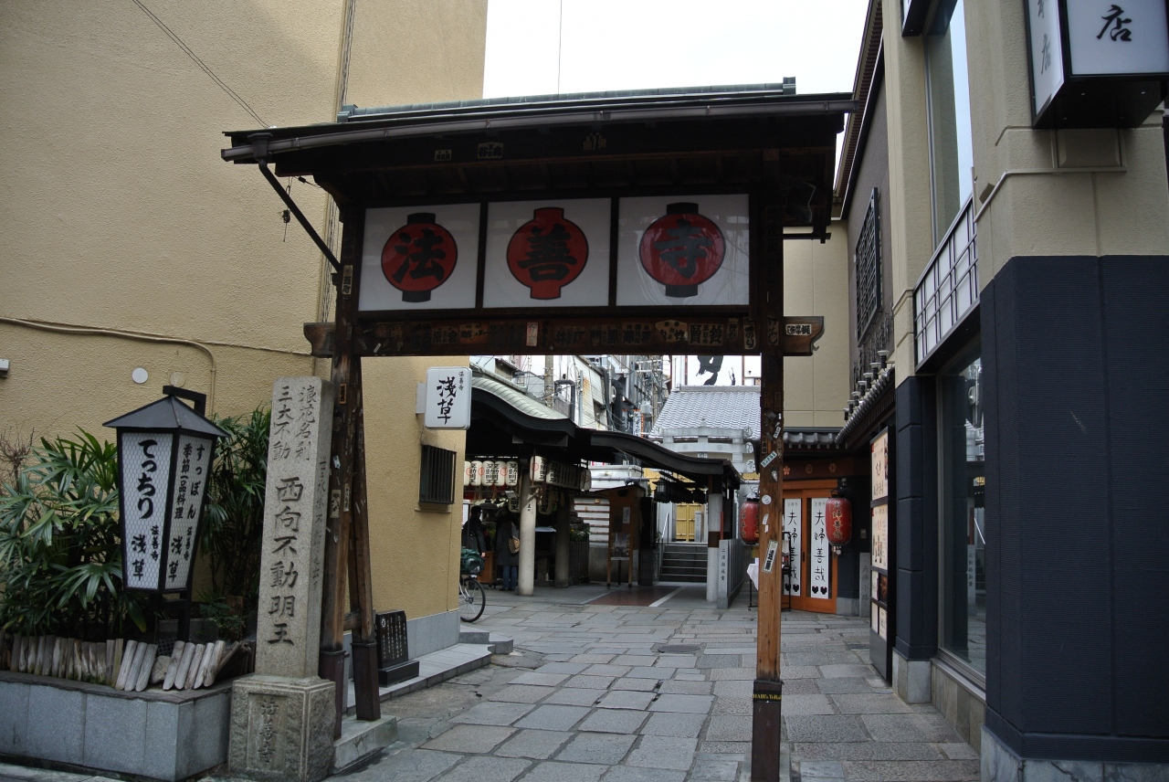 周囲の喧騒がうそのように、この一画はとても静かで情緒あふれる雰囲気に包まれています。昔の「なにわ」情緒はこんなだったのかなと感じられる場所です。境内には水掛不動や、ぜんざいで有名な夫婦善哉の店もあります。