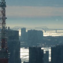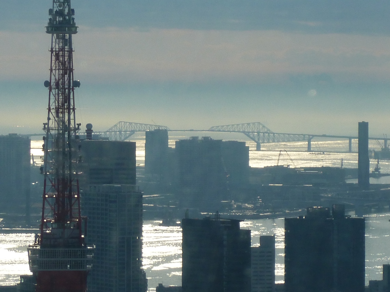 東京ミッドタウンから東京タワー越しに「東京ゲートブリッジ」の姿が見えました。