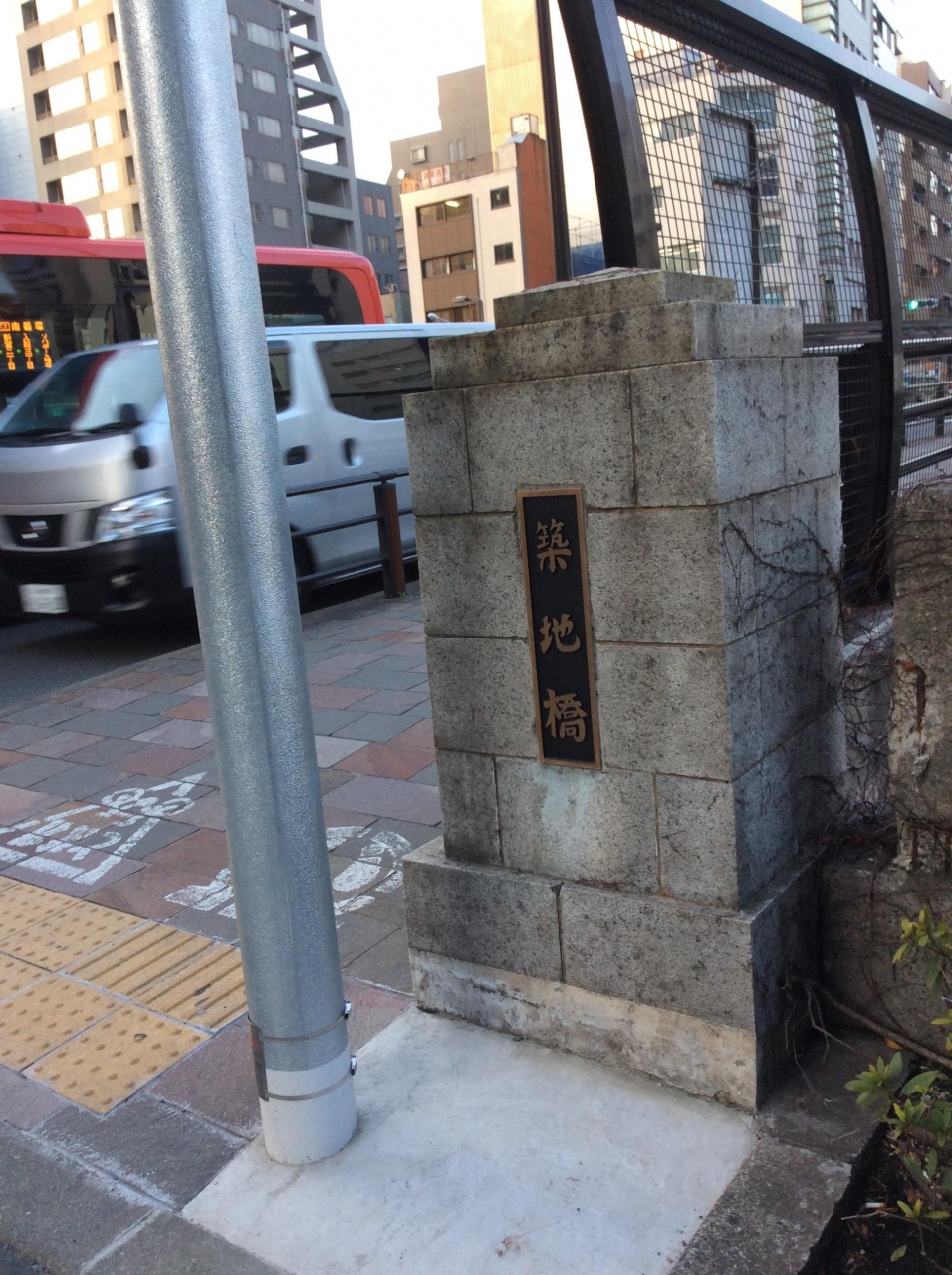 中央区役所の近くにあります。位置的には築地1町目と新富2丁目で入船橋と三吉橋の間にある橋です。この辺りは築地川が元あった場所なので橋が非常に多いところですが埋め立てられて首都高速道路が走っている上では趣がないですね。
