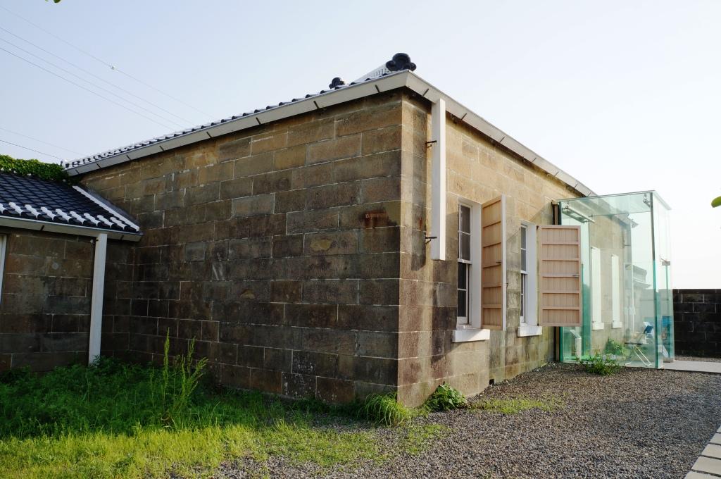 樫野埼灯台の敷地内にある昔の官舎の建物です。灯台と同じイギリス人の設計だそうで、小さいですが白枠の出窓がありヨーロッパの一軒家のようです。最近リニューアルされたのか入り口にはガラス張りの屋根がありました。休日だけのオープンだそうです。