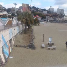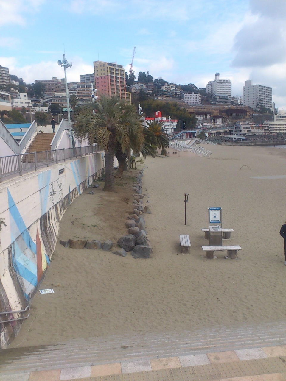 お宮の松の前に広がるビーチです。熱海駅から歩いて行ける距離ですが、遊~湯~バスに乗ってお宮の松の停留所で降りました。サンビーチに続いて親水公園もあります。白い砂浜が広がるビーチで夏には海水浴で賑わうようです。2月でしたが多くの観光客で賑わっていました。