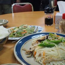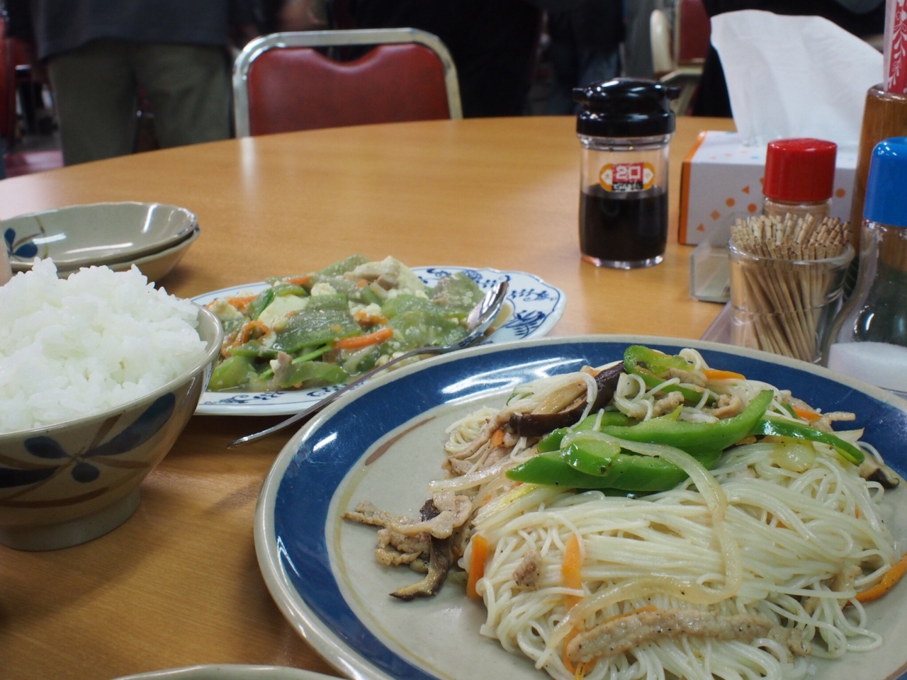 ディナータイムだったのもあり、お店は盛況。要は下の市場で購入した鮮魚をお刺身としていただけるのが外国人観光客(主に中国人)に人気のようで、沖縄料理に加えて中華料理が充実していました。笑