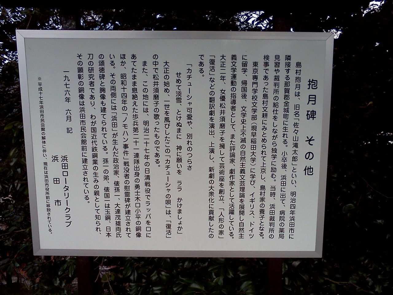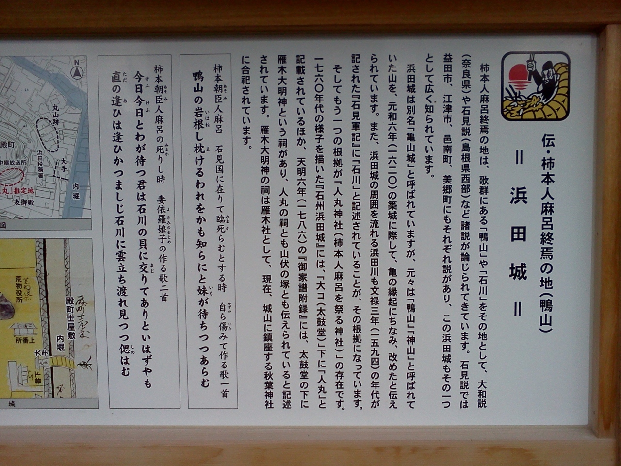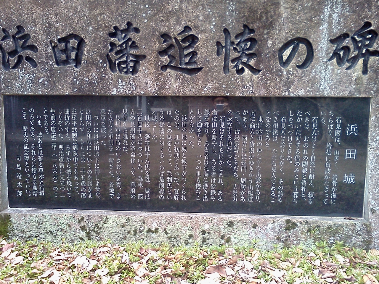 浜田駅と浜田港の中間ぐらいに、浜田城山公園があります。丘のようなところ少し登ります。公園の中には、石碑や立て看板が多く立てられており、浜田や石見地方の歴史を知ることができました。また見に行きたいと思います。