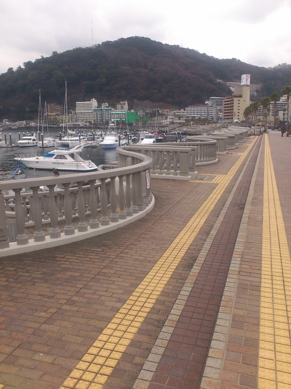 熱海のサンビーチの西側に続く、海辺の公園です。東端には海に突き出たムーンテラスもあります。熱海市は北イタリアの都市と姉妹都市の関係にあり、そこと似た雰囲気のデッキになっています。熱海というと、会社の慰安会のような少し古い温泉街というイメージがありますが、この親水公園のデッキを歩くと、そのイメージは一変します。