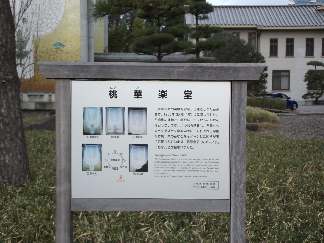 この桃華楽堂は、、音楽好きの香淳皇后さまの還暦記念として、1966 (昭和41) 年に建てられた収容人員200名の音楽堂です。