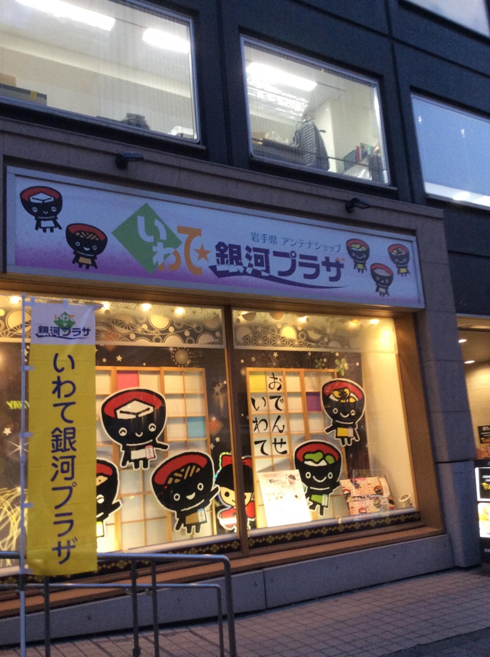 晴海通り沿いの万年橋の手前にある、岩手県のアンテナショップです。岩手の名産品である、じゃじゃ麺、盛岡冷麺、わんこそばなどの麺類、小岩井農場のソフトクリームや乳製品、店名の銀河高原ビールなど岩手ブランド満載です。