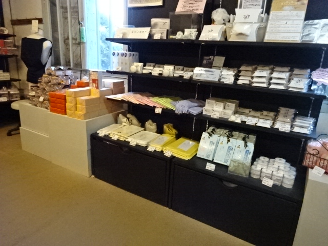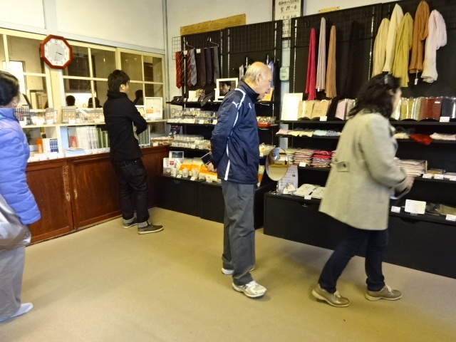 富岡製糸場の本館にあります。製糸場の建物や施設を見学し、最後に本館に行き、説明書きや映画を鑑賞したのちに、最後に売店へ行きました。お菓子や漬物のお土産をはじめ、シルクでつくられた製品が売られています。決して安くはありませんが、高級な品質がうかがえます。ぜひ購入して身に着けて「高貴なお方」の仲間入りをしましょう。