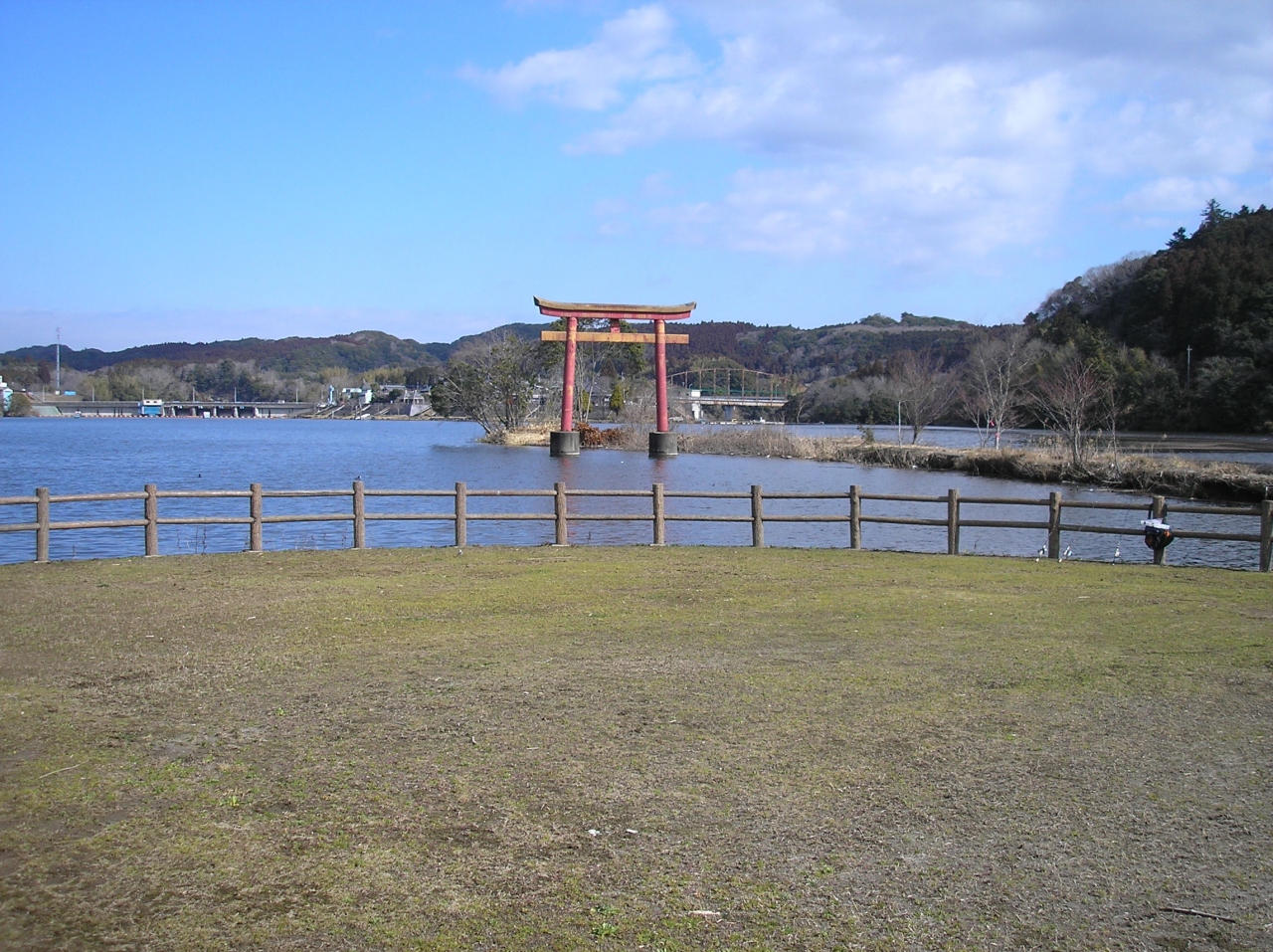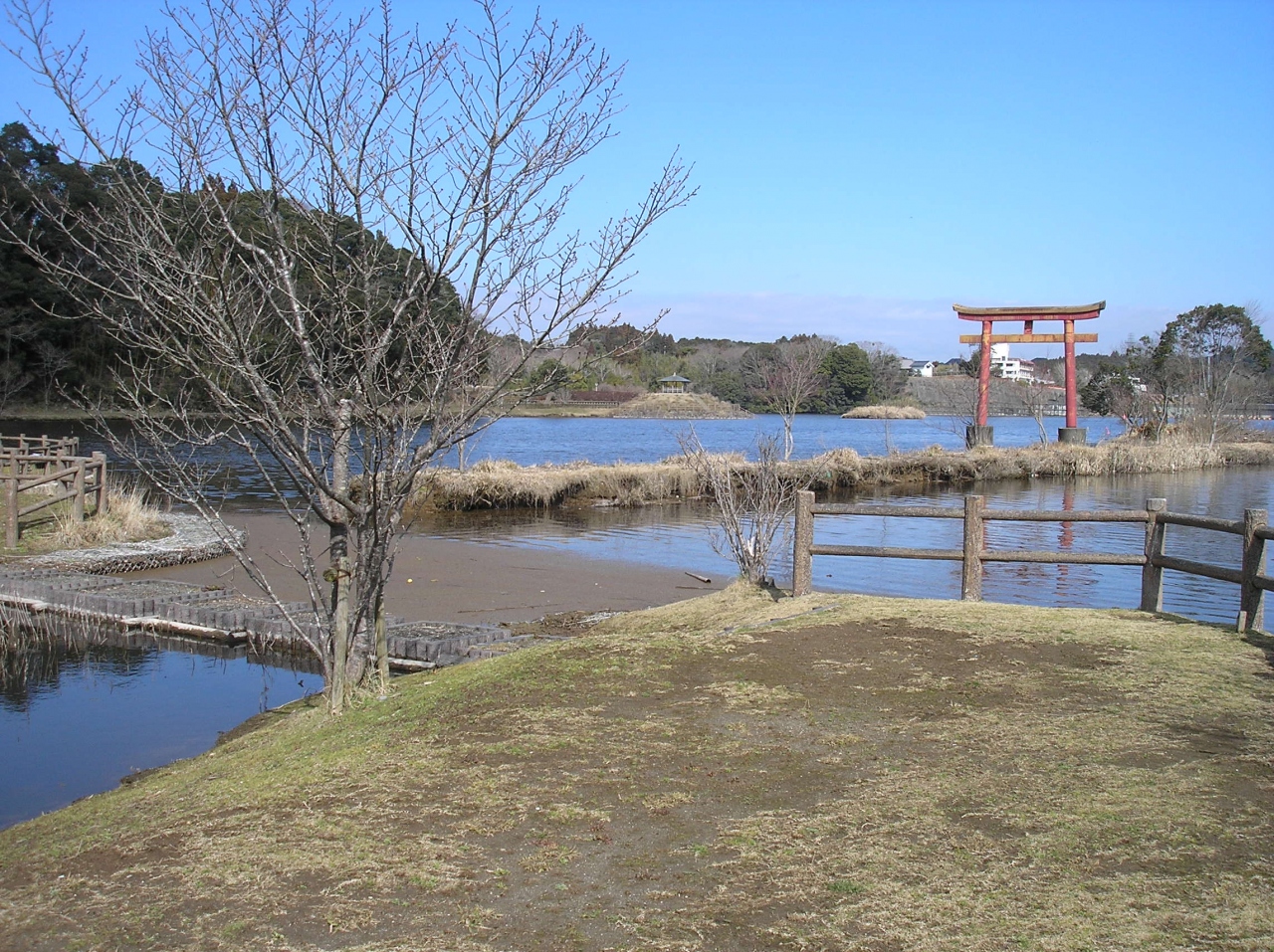 湖の中に鳥居があったり、湖が複雑な形をしているせいか、いたる