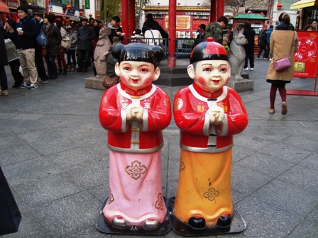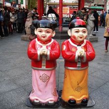 神戸の南京町の中心である十字路の広場である。極彩色のあづまやなどもあり、それらしい雰囲気を漂わせている。週末ともなれば豚まんを購入するための行列が並んでおり、さまざまな店で購入した中華料理を食べている人も多い。
