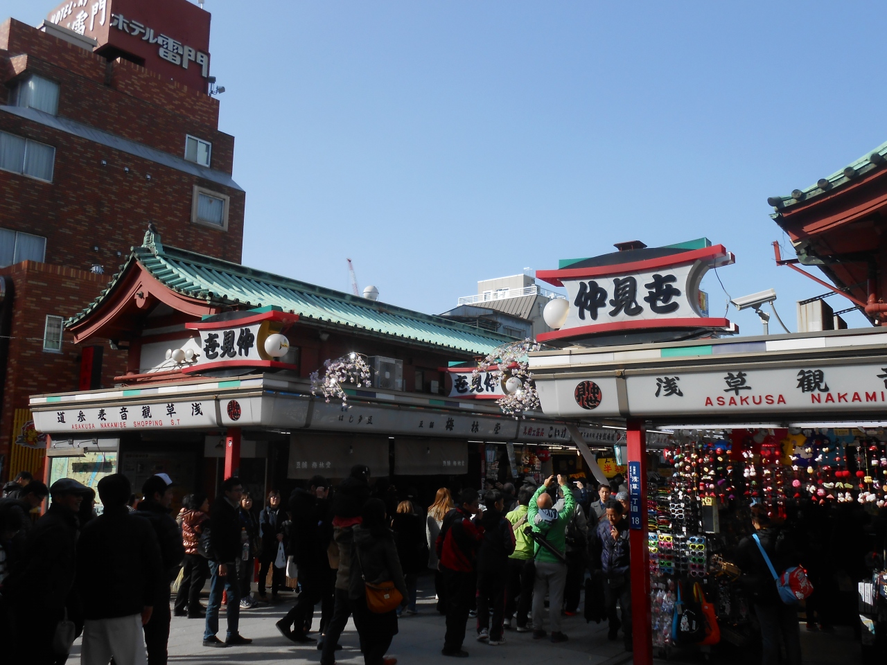 浅草寺に向かう表参道で、両脇には土産物屋がズラリとならんでいます