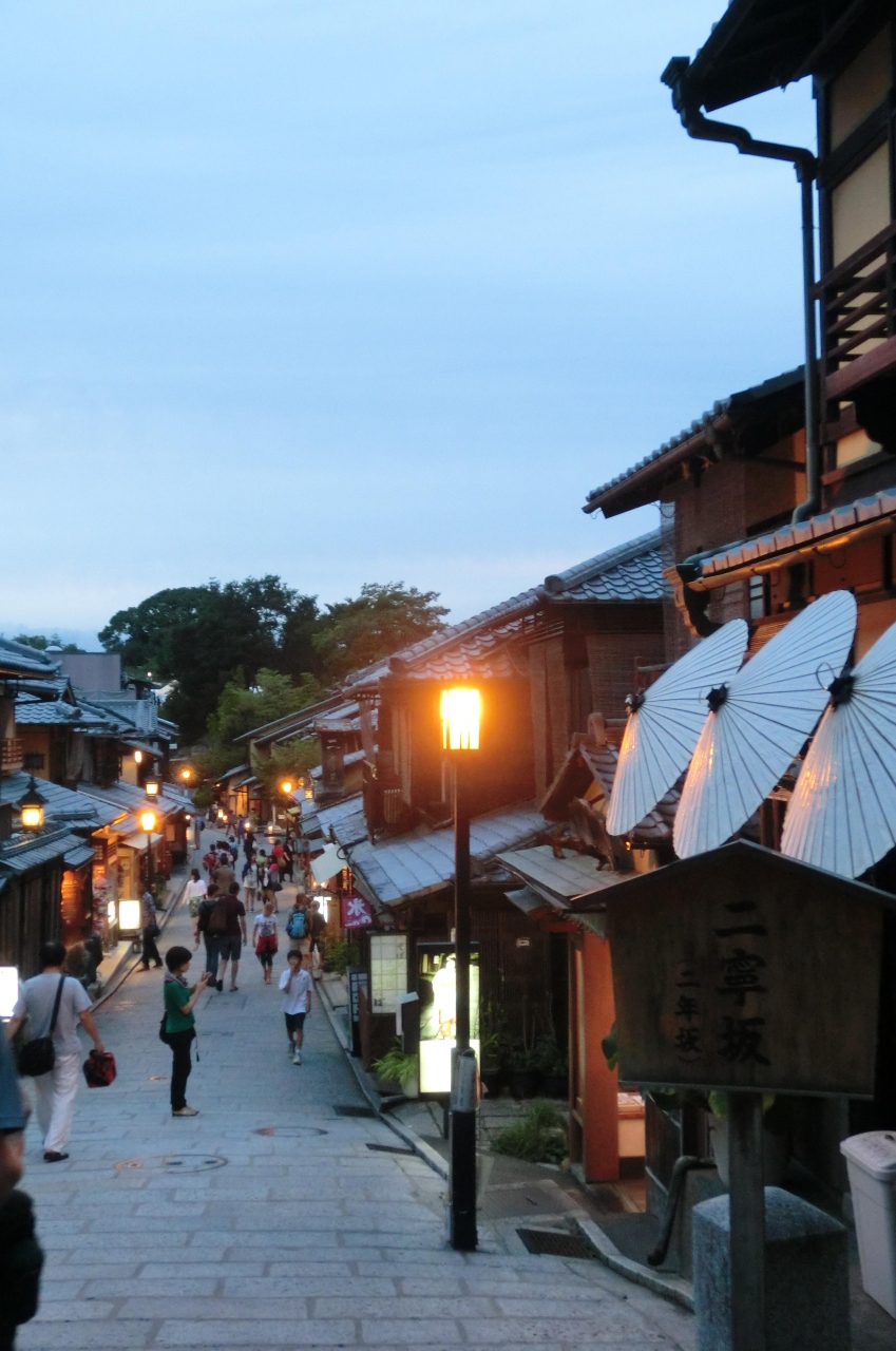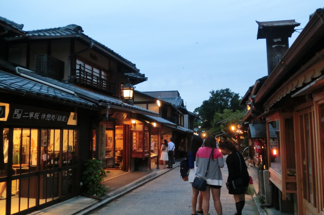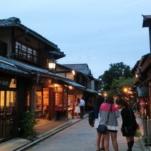道の両側には土産物屋さんやお食事処が立ち並びますが、それぞれの建物は京都の町家風の景観が保たれ、歩くのが楽しい小道です。