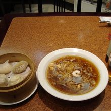 南京町の一番西側に位置する店である。サービスセットが650円であり、小さな飲茶(上海ショウロンポウ、海老餃子、ふかひれ餃子、肉しゅうまい、それぞれ一品ずつ)と、ミニふかひれ麺のセットを注文したが、ちょうど良い量だった。
