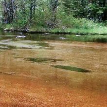 田代湿原から歩いて行くと浅瀬の池が見えてきます。