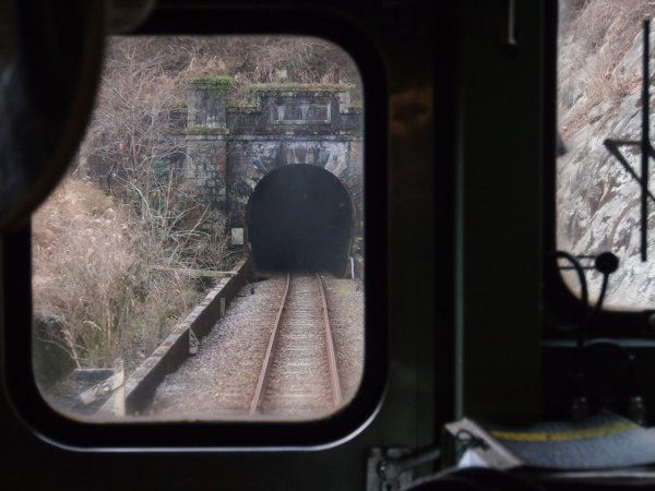 難航時の末、明治41年(1908年)に全長2096mの第一矢岳トンネルが完成しました。トンネルの北側の大畑側には当時の逓信大臣 山縣伊三郎氏の「天險若夷」の文字が掲げられています。「てんけんじゃくい」と読みます。南側の矢岳側には当時の鉄道院総裁 後藤新平氏の「引重致遠」の文字が掲げられています。「いんじゅうちえん」と読みます。合わせて、「天下の難所を平地であるかのようにしたおかげで、重い貨物を遠くへ運ぶことができる」という意味になっています。