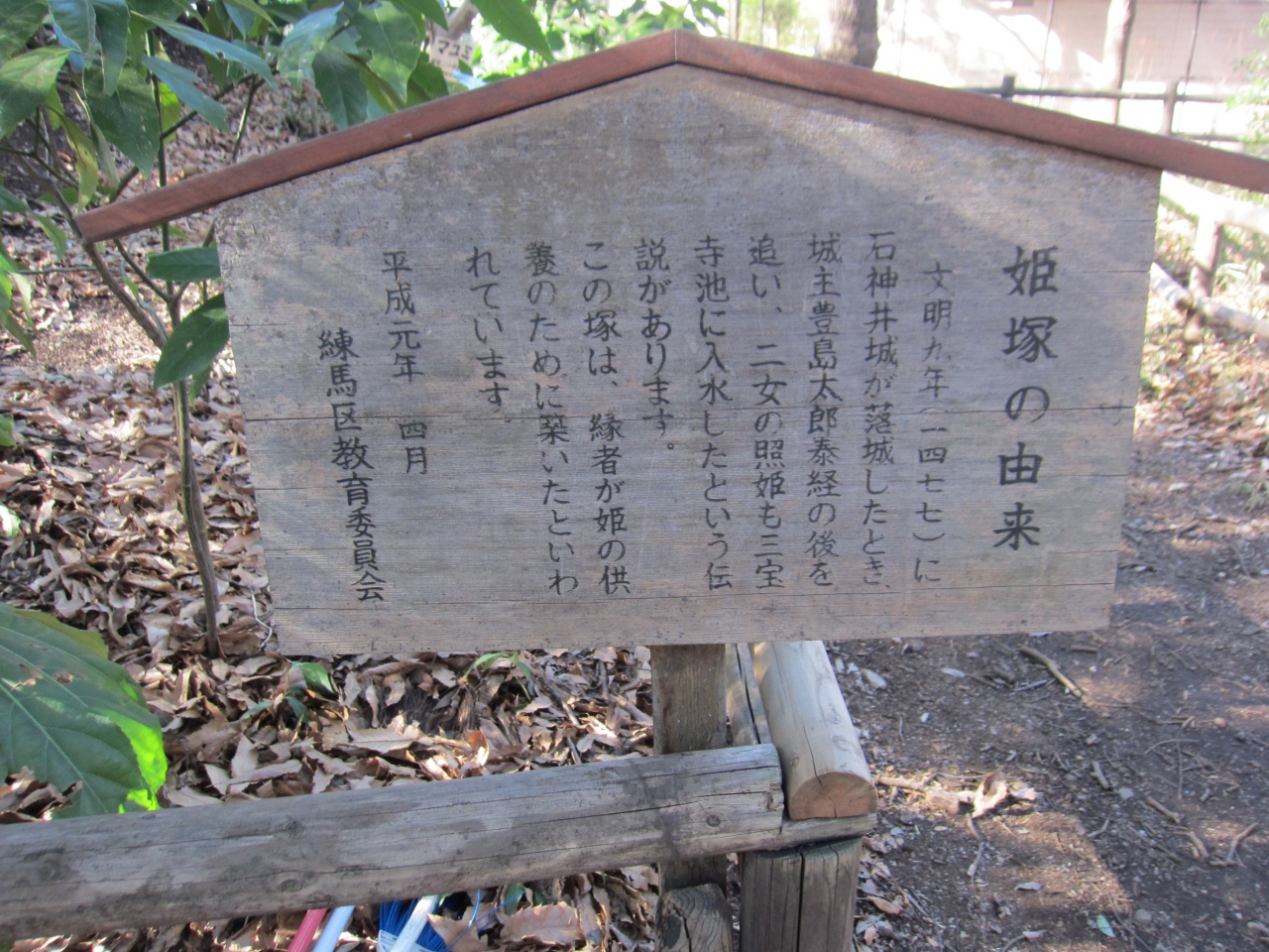 文明9年(1477年)に石神井城が落城したとき、城主豊島太郎泰経の後を追い、二女の照姫も三宝寺池に入水という伝説があり、この塚は縁者が姫の供養のために築いたと言われています。