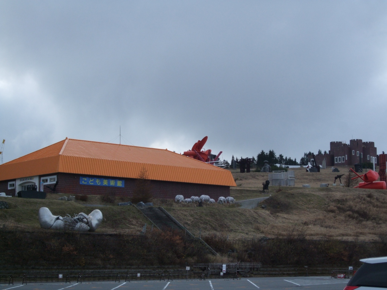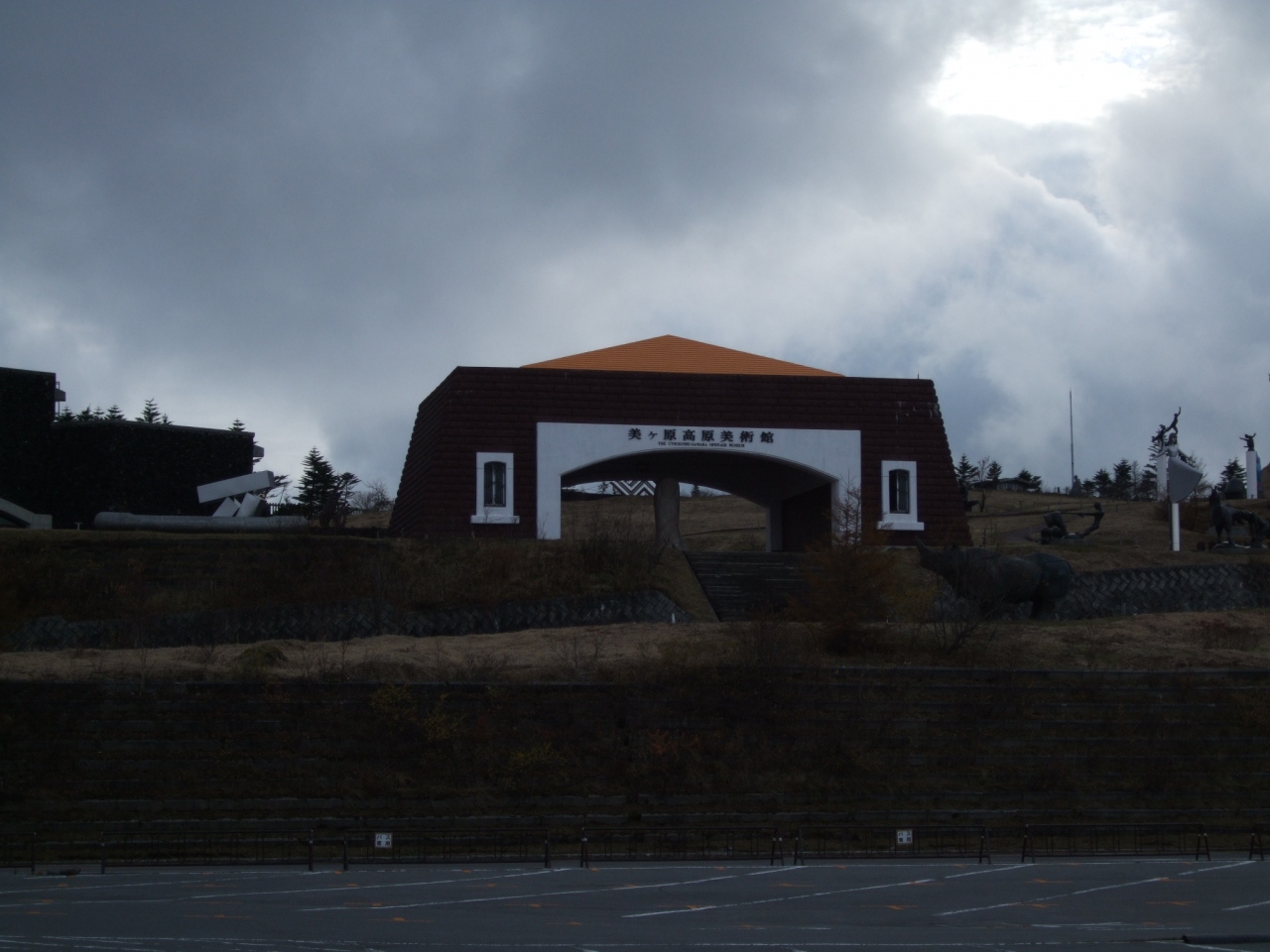 ビーナスラインの急勾配を登ること登ること…頂上付近に広い駐車場が付属する美術館があります。無数の彫刻類が野外に配置され、アートが分からない我々としては「ん?」の感じでした。当日は曇り空だったので、景色がくっきり観えなかったのですが、晴れの日であれば雄大な景色を楽しむことが出来ると思います。