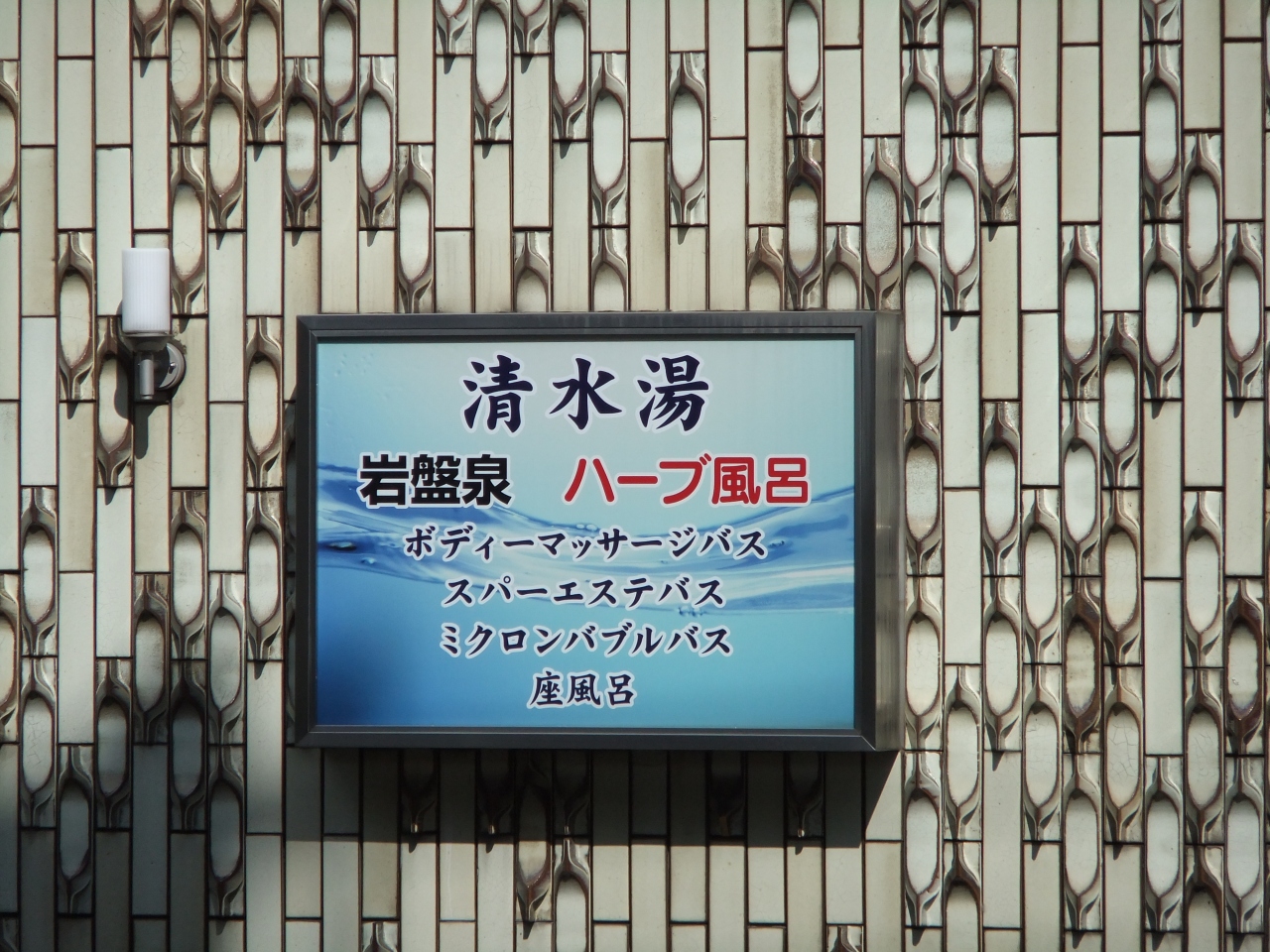 地元にある老舗の銭湯ですが、トイレがリフォームされていたり、床がバリアフリーに改装されていたりとメンテナンスがしっかりしています。外観は、屋根の上に見える清水湯の文字が書かれた煙突がシンボルの昔ながらの風情が感じられます。壁面に銭湯特有の富士山などの絵はありませんが、その代わりにお湯につかりながら楽しめるようにテレビがしつらえてあります。