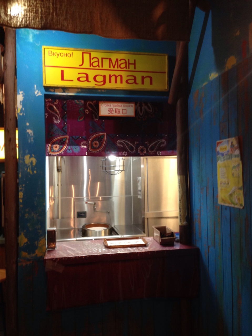 カップヌードルミュージアムの中にあるフードコートです。世界各地の麺とチキンラーメンを提供しています。それぞれのお店の見た目がその国のお店のようになっていて中々面白いです。カザフスタンのラグマンとチキンラーメンを食べました。チキンラーメンはトッピングが違うだけで普通。ラグマンは鮮度の良い羊肉を使っていないからか、臭みが強くてあまり美味しくありませんでした。