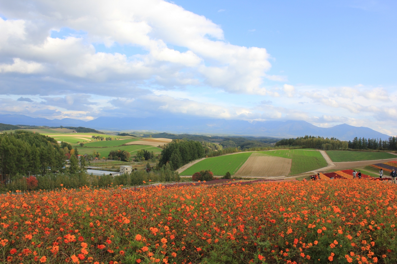 私が訪れたのは10月の始めでしたがひまわりがきれいに咲いていました。(北海道は一度にアジサイ、ヒマワリ、コスモスを見れる土地だそうです)