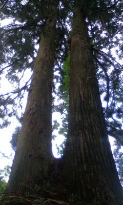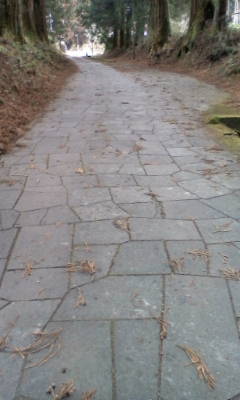 国道121号線沿い今市宿の終わりから野口方面の街道は車は通行止めになっていて約4百年の杉並木の大木を見上げながら歩くことができます。