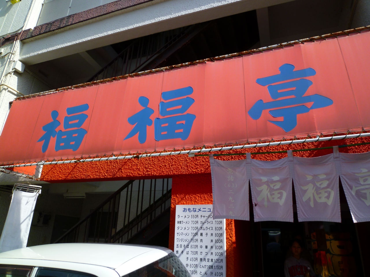 外観は「街の中華屋さん」、色あせた暖簾をくぐり中へ。