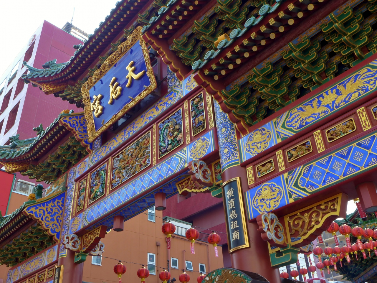 横浜中華街の南門シルクロードにある2006年に落慶した比較的新しい道教のお寺です。