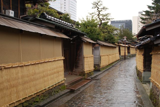 加賀藩の武士が住んでいた土塀と石畳の続く街並です。