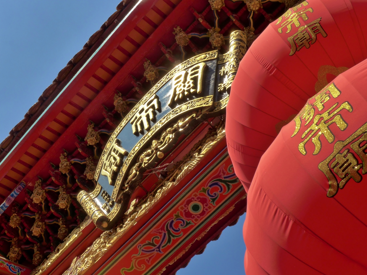 横浜中華街の護り神、三国志に登場する関羽を祀るお寺で1873年に初代の廟が完成したそうです。 中華街で一番賑やかなメインストリート、関帝廟通りにあります。